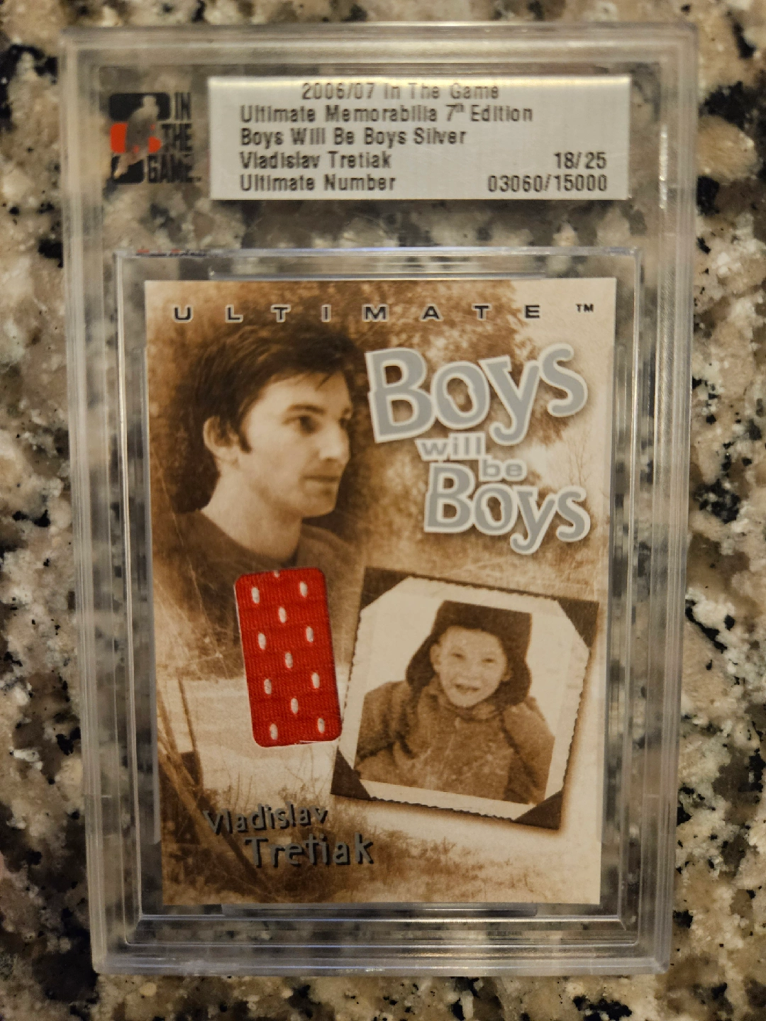 60Selling a 2006/07 In The Game Ultimate Memorabilia 7th Edition 'Boys Will Be Boys Silver' card featuring Vladislav Tretiak Numbered 18/25 Ultimate Number 03060/15000