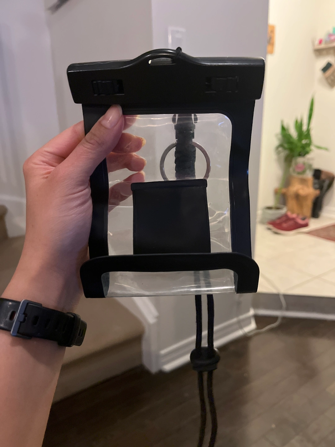 Free protective case that seals air tight so you can swim with it. Has a strap to hang around your neck