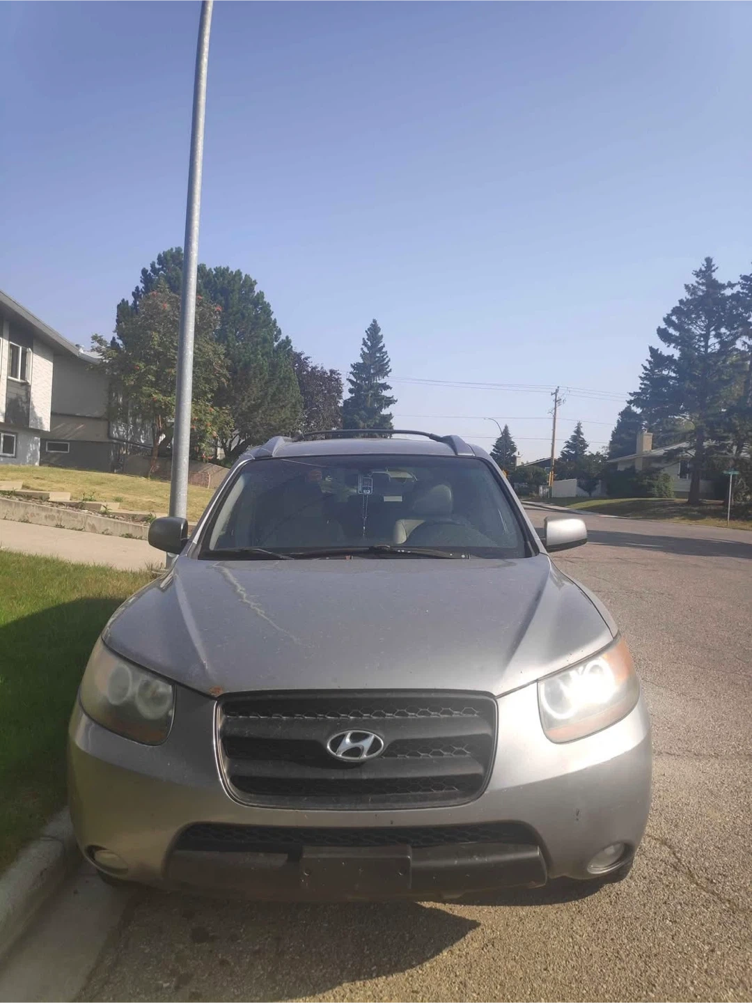 I'm selling my 2007 Hyundai Santa Fe Active 4x4 All wheel drive 6 Cylinder 3.3l Oil change done recently Cheap on gas Brakes good, battery tested No leaks Engine and transmission are great No mechanic issues Ac working great and heat Bluetooth FM modulator included Good car for family Small hail damage on the roof, new windshield 4 door, 5 seater It is clean inside and outside First come, first serve All weather tires on, includes 4 winter tires Price is negotiable