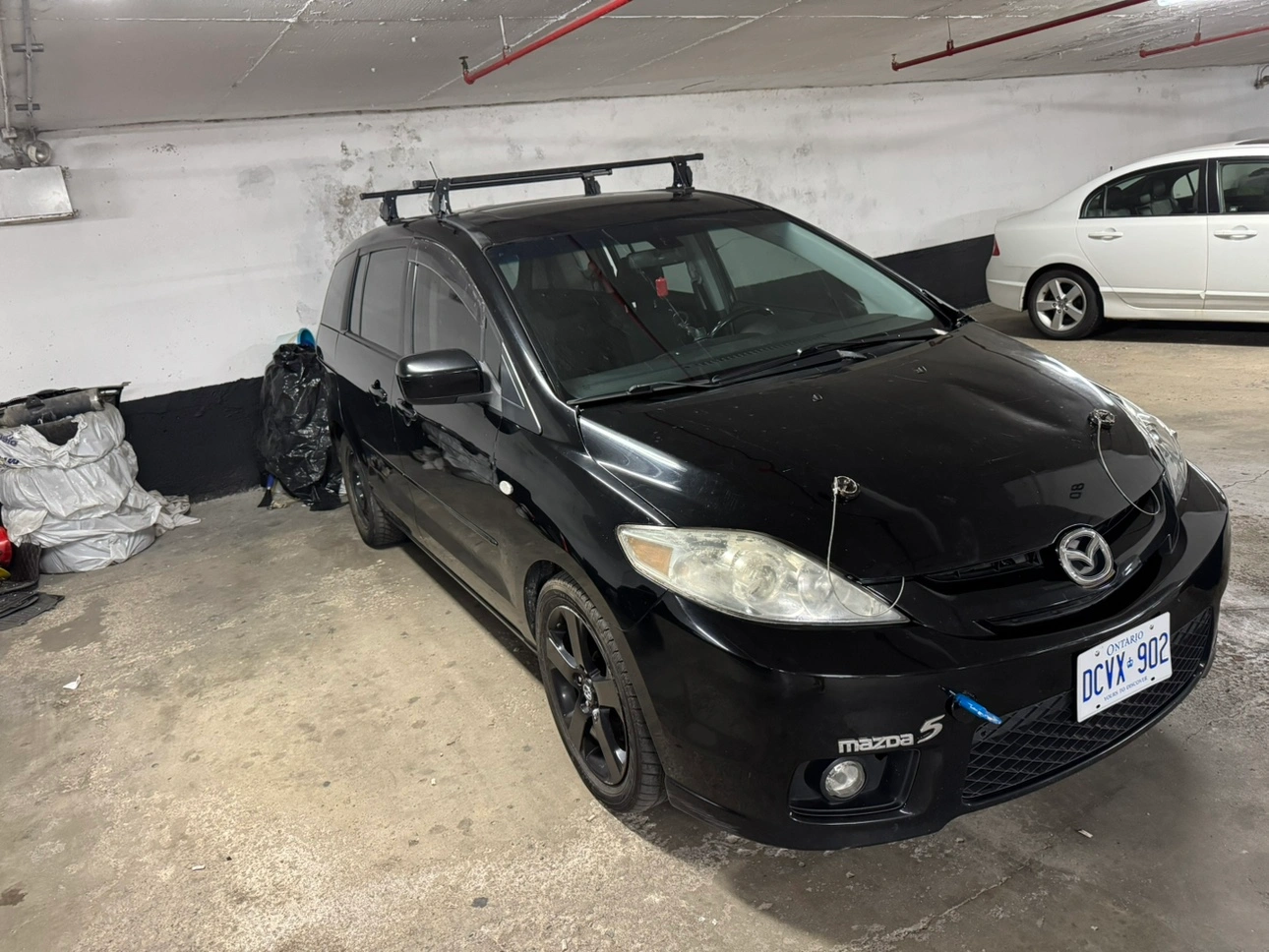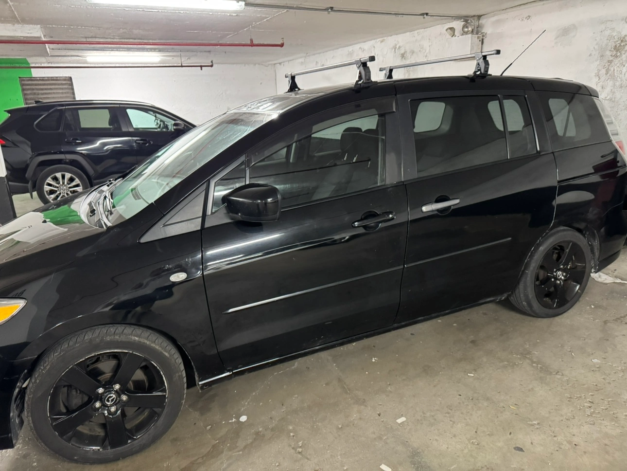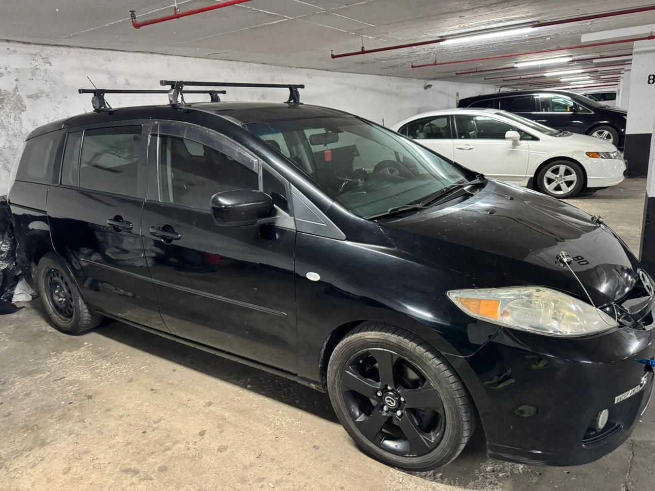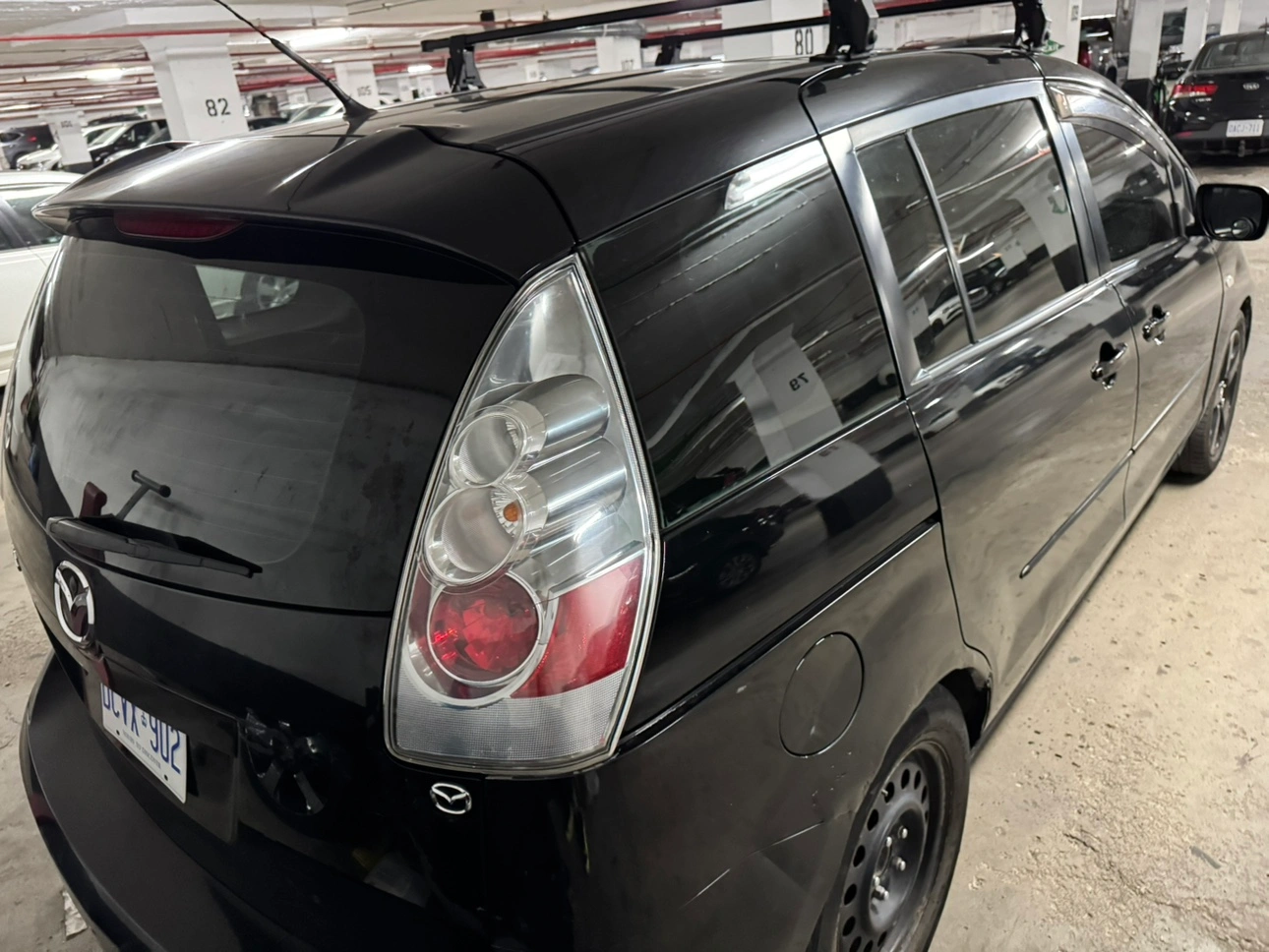 10Black Mazda 5 in good condition. Comes with roof racks and tinted windows. Details of fan or air conditioner transmission manually