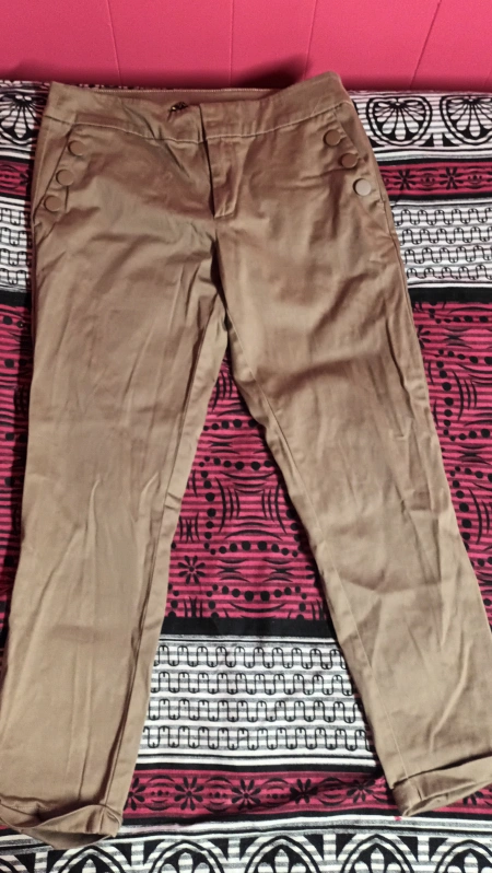 This pant is worn once.It is 98% cotton and 2% elastene.It is measured 30 cm in the hip and 33.5(85.09 cm) inches in length.Please feel free to msg for more details.