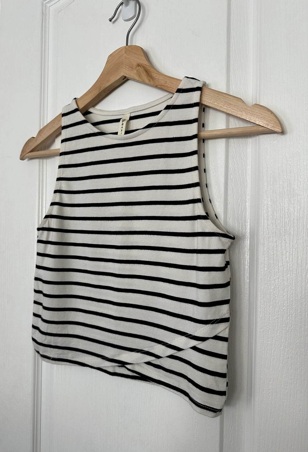 ▪️black and white striped fitted sleeveless crop top