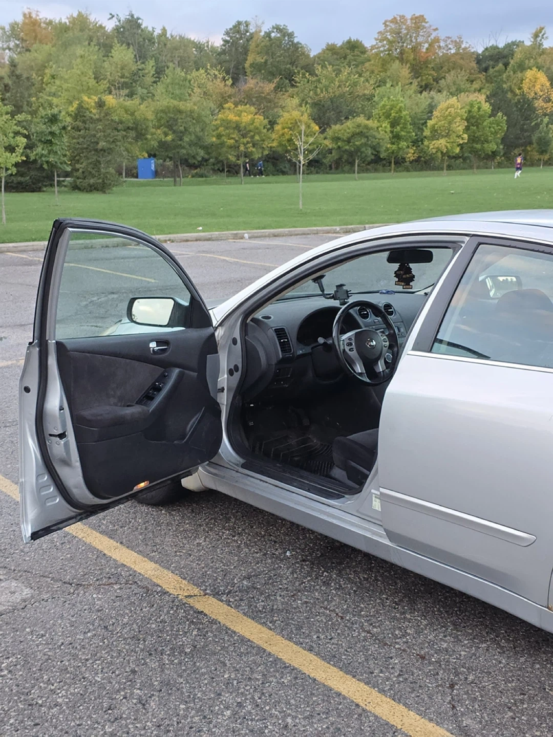 Selling a silver Nissan Altima sedan. It's in used condition and would be great for someone looking for a reliable vehicle. Great Condition! Run and drives ASIS 170k kms Features: •Heated seats, heated steering •Automatic seats •AC/Hot air works great •Very clean inside Recently oil change Comes with 8 tires and 4 rims Also open to trades!