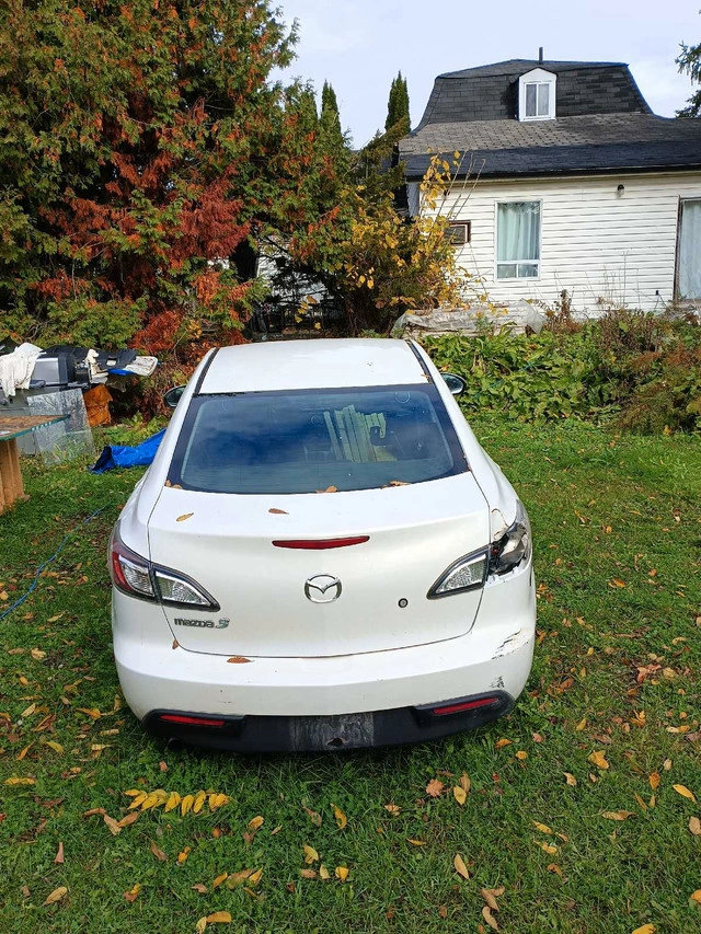 292010 Mazda 3 for part. Engine Runs. Has a coolant leak at the coolant housing. Would need alignment for driving. Rear tail light broken. Was driving it till the coolant housing broke and was leaking coolant. Was going to fix it but decided not to bother and got another car. Asking $980 or best offer. Condition: Damaged Make: Mazda Model: 3 Year: 2010 Kilometers: 380000 Bluetooth: Yes For Sale By: Owner Cruise control: Yes Sunroof: Yes Air conditioning: Yes Trailer hitch: Yes Alloy wheels: Yes Body Type: Sedan Push button start: Yes Navigation system: Yes Parking assistant: Yes