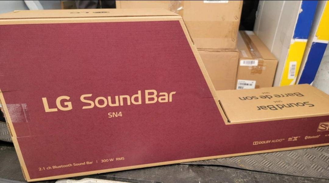 The LG SN4 sound bar with wireless subwoofer delivers an incredible sound experience. This 2.1 channel design is powered has 300W of output to produce powerful audio. Its AI Sound Pro feature uses adaptive sound control to automatically adjust the sound levels, delivering optimized treble and bass based on content. °•○•°•○•°•○•°°•○•°•○•°•○•°•○ ☆`New | Sealed 》$250 ✨️ 📍 Pick Up Point @ Scarborough Golf Club Road & Lawrence Ave East 📦 May Deliver Locally or Ship via Canada Post for an additional cost* 🔎 BE SURE TO CHECK OUT MY OTHER LISTINGS FOR MORE AWESOME DEALS! Thank you. °•○•°•○•°•○•°°•○•°•○•°•○•°•○ What's included: Optical Cable Wall Mount Bracket 300W of power in this 2.1 channel sound bar deliver an immersive sound experience Wireless subwoofer for powerful, deep bass Bluetooth connectivity lets you pair this sound bar to other Bluetooth-enabled audio devices to stream music and movies AI Sound Pro uses adaptive sound control to automatically adjust sound levels and delivers optimal audio based on the content you are watching Optical or HDMI ports for easy connectivity to compatible devices