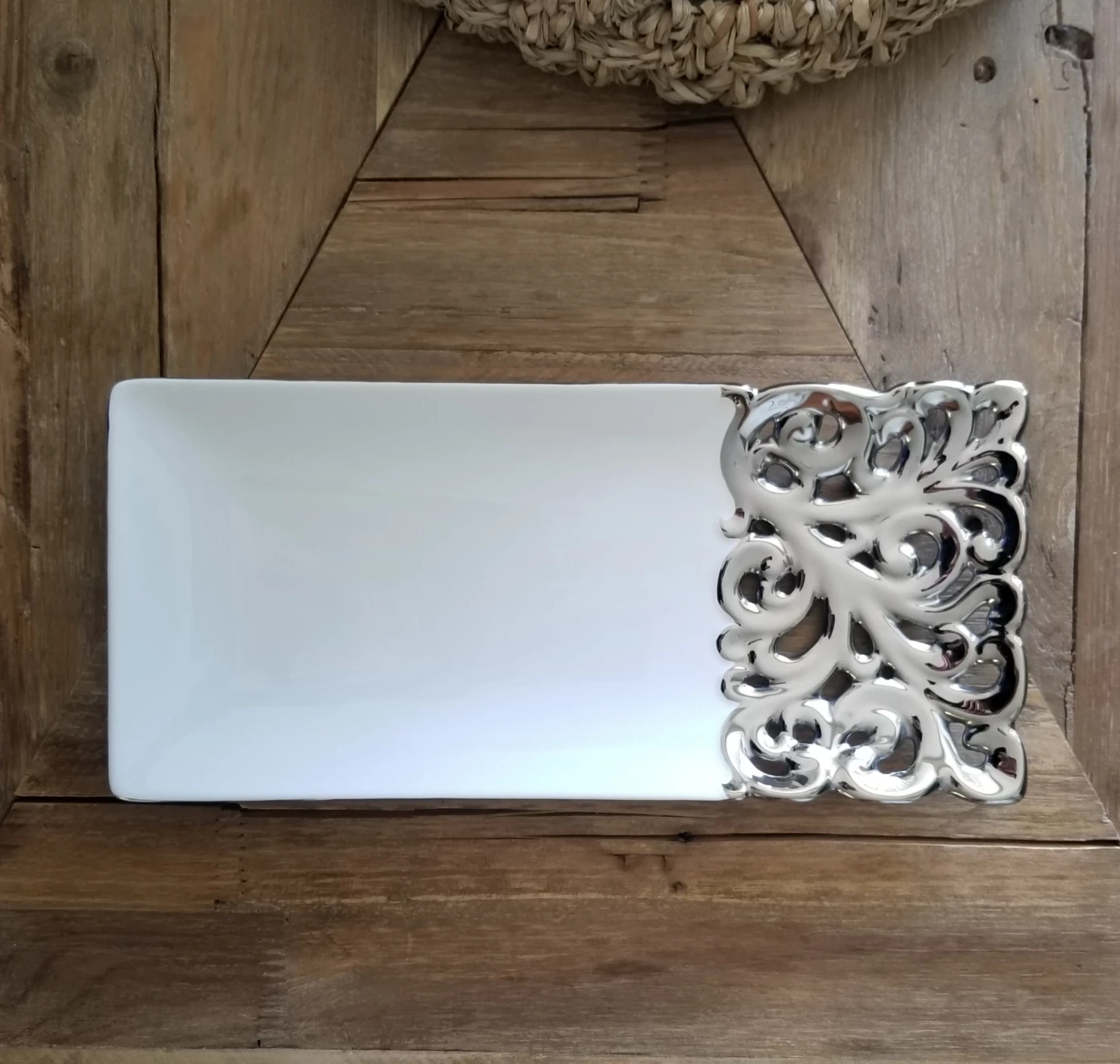 White & Silver Platter / Kitchen & Dining Serving Tray