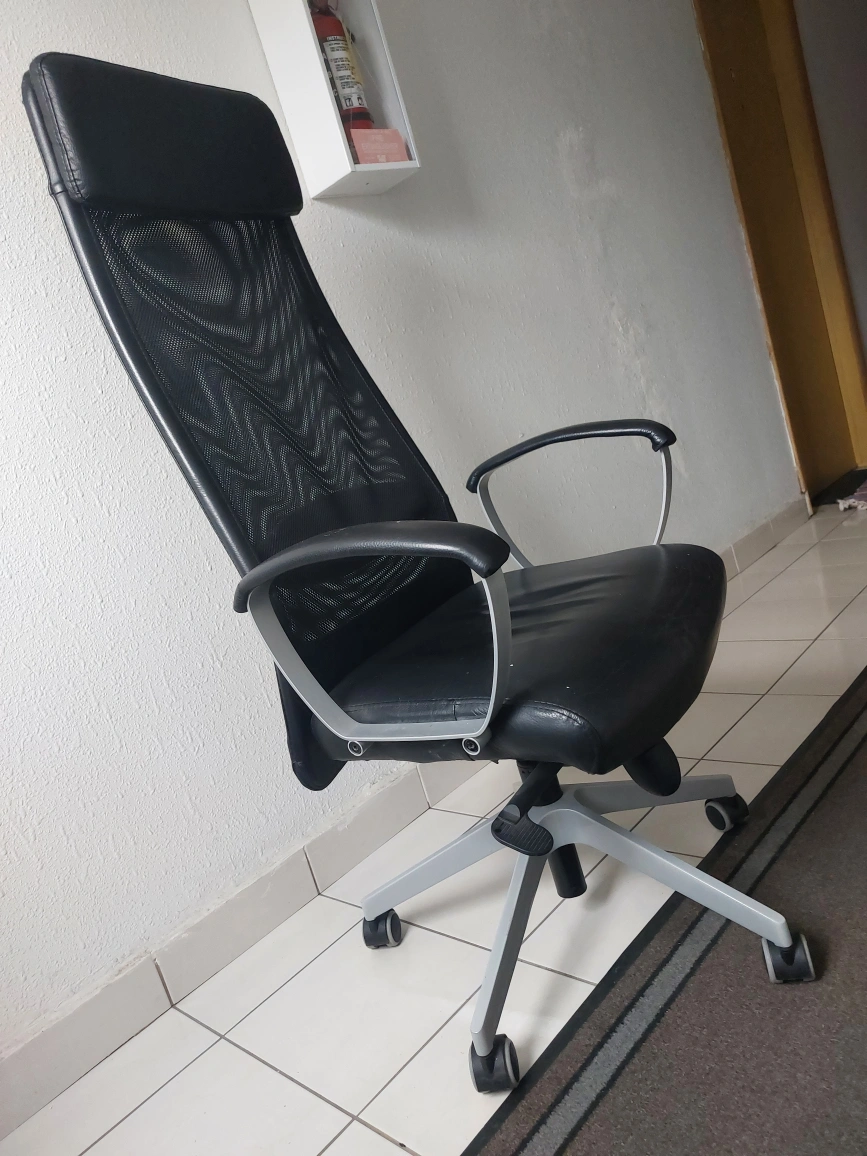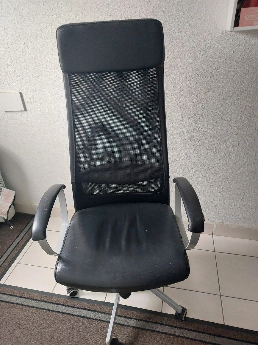 Hello, this is a great chair. Looking to give it up because I just don't need it anymore. It had one gash in the arm of the chair but other than that it looks great. Text me for more details!