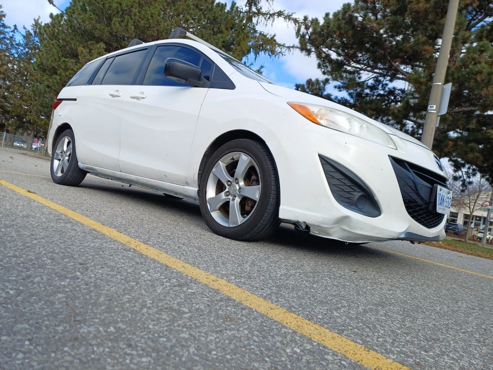 76This Mazda5 has been properly maintained and is running perfectly. Ideal for families, students, or anyone who needs a practical and reliable daily driver. The engine and transmission are both in excellent shape, and maintenance has always been done on schedule (oil changes every 5,000 km). Km 171.500 Key Features: 2.4L engine: very fuel-efficient and dependable 6-seater: roomy, comfortable, and great for families Accident free 2013 Mazda5 4dr Wagen Auto GS 6 Passengers comes with Power Steering, Power windows, Alloy Wheels, Air Conditioning, Third Row Seating and much mor! Engine: 2.5 L 4-Cyl