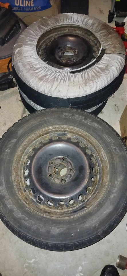 Set of 4 Winter tires with rims, used the last two years but still over 70%.