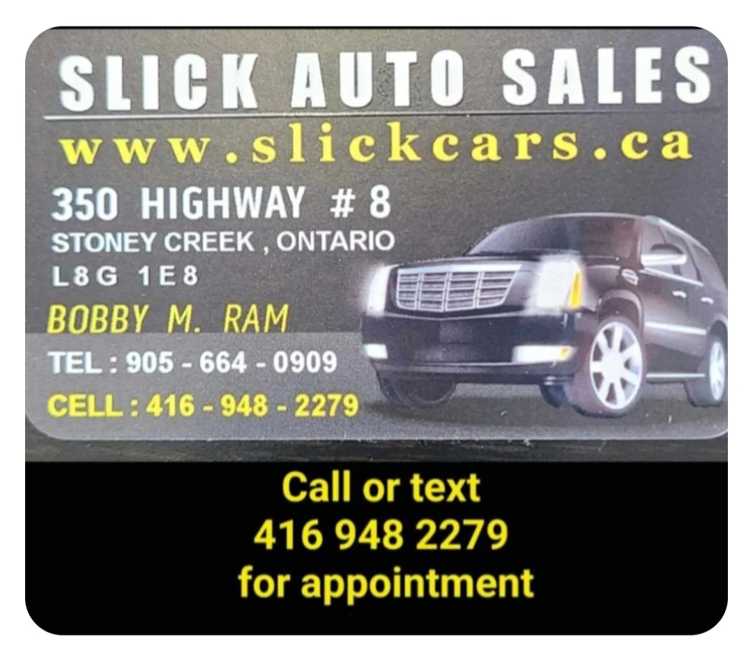 14166,000 kms NO ACCIDENTS CERTIFIED 1 YEAR WARRANTY PLATES AND REGISTRATION $ 12,900 + TAX SLICK AUTO SALES 350 HIGHWAY 8 STONEY CREEK ONTARIO L8G 1E8 905 664 0909 416 948 2279 cell www.slickcars.ca