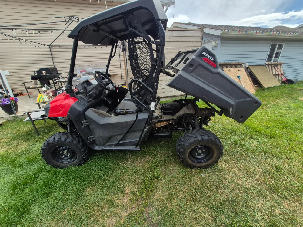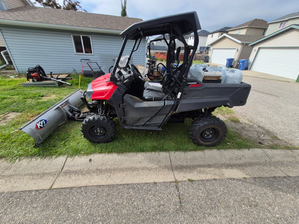 Selling a 2016 Honda Pioneer 700 UTV. It has an odometer reading of 2596 km. It also includes a snow plow. Great machine runs well. Selling as I've purchased a skid steer. asking $15000o.b.o