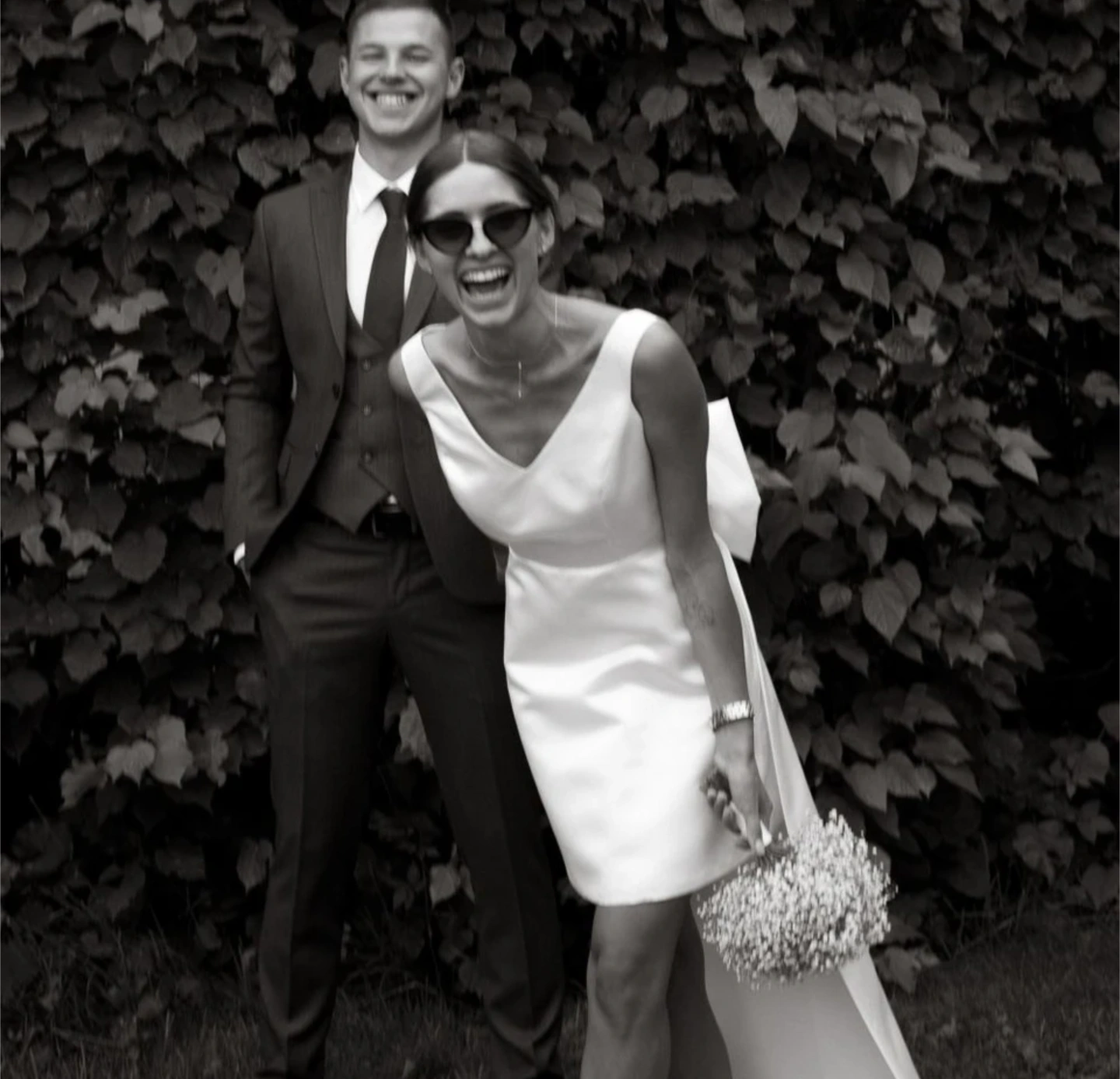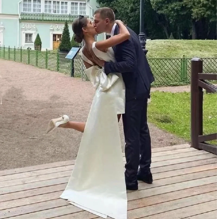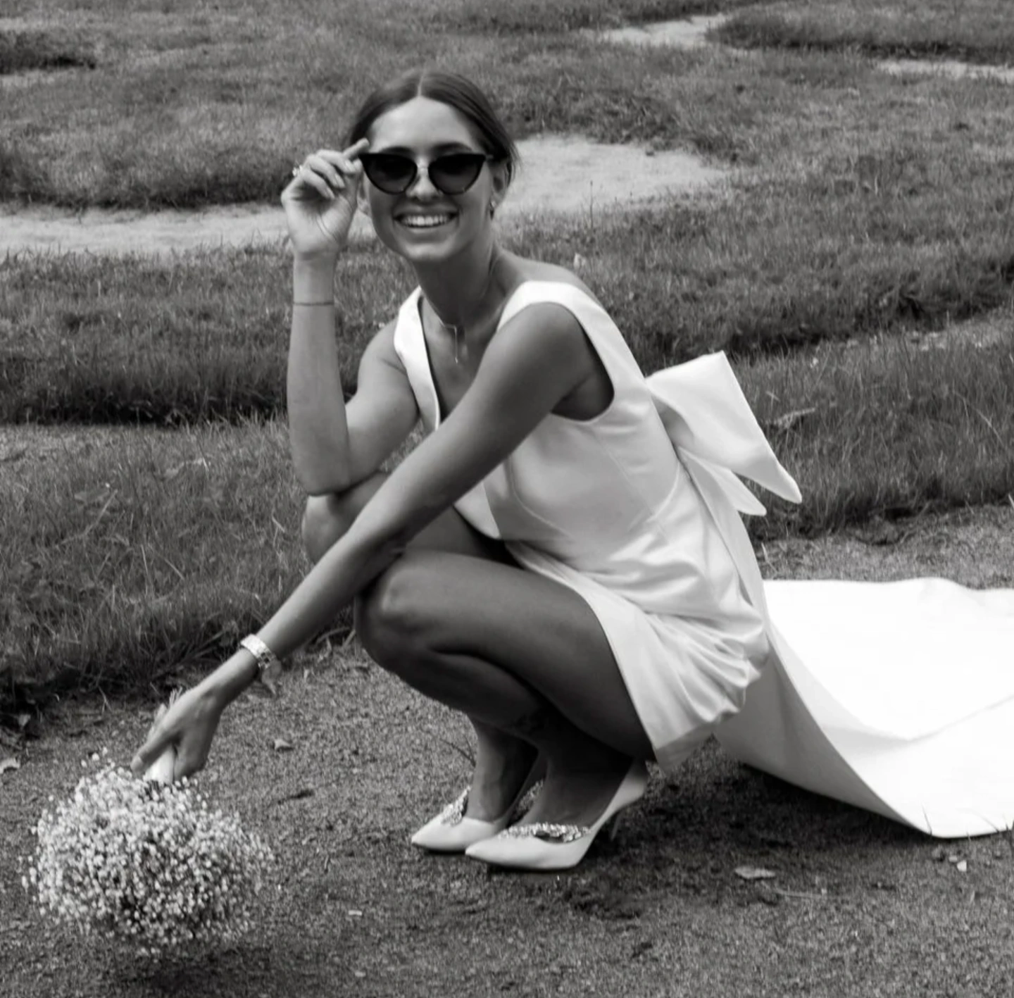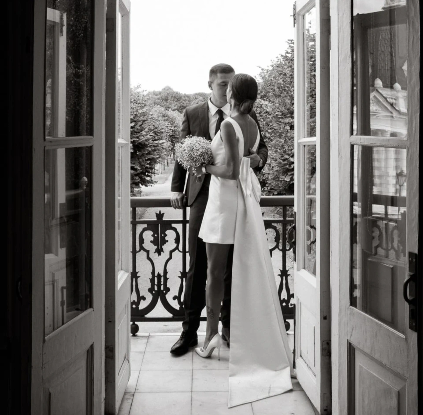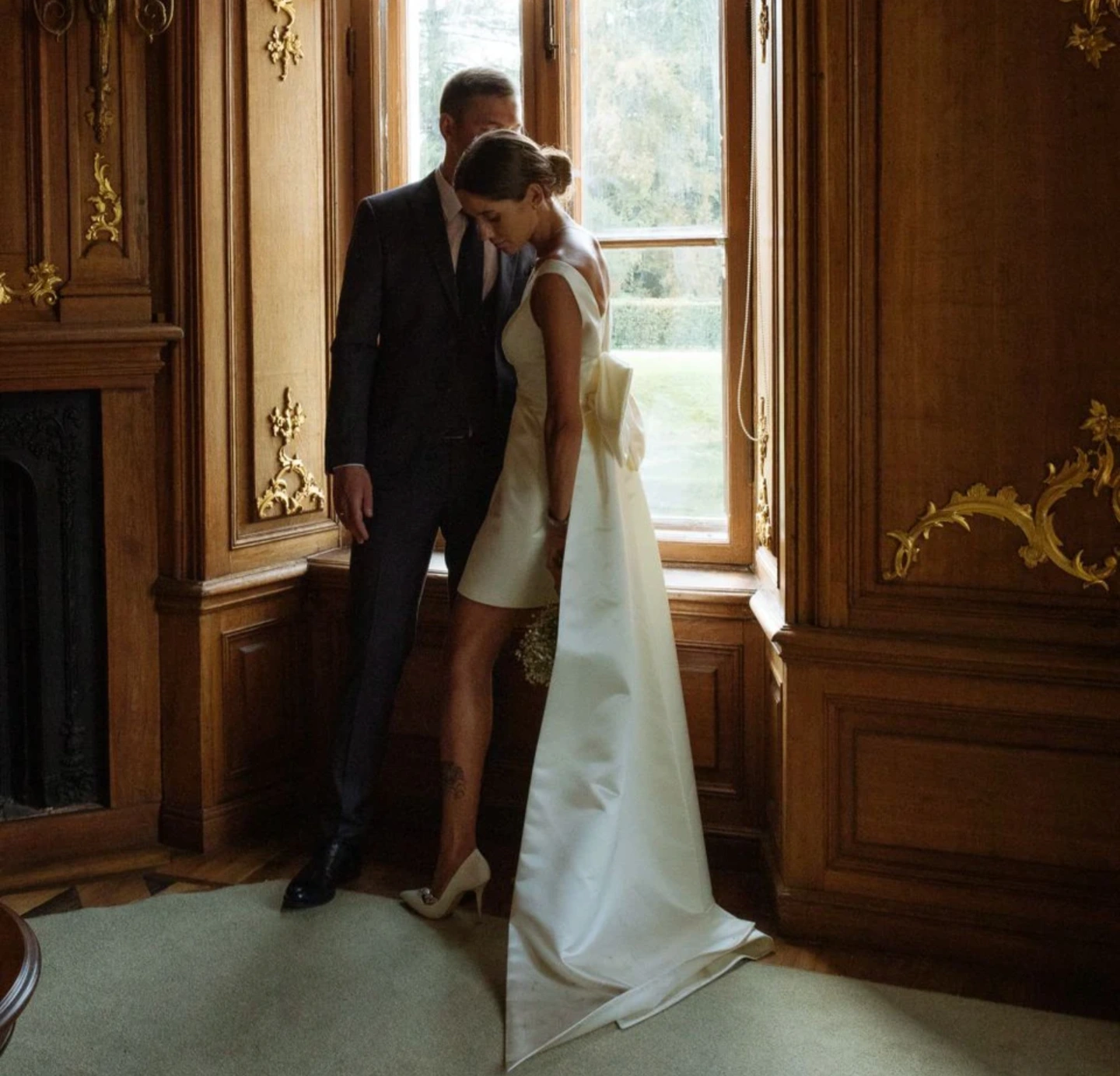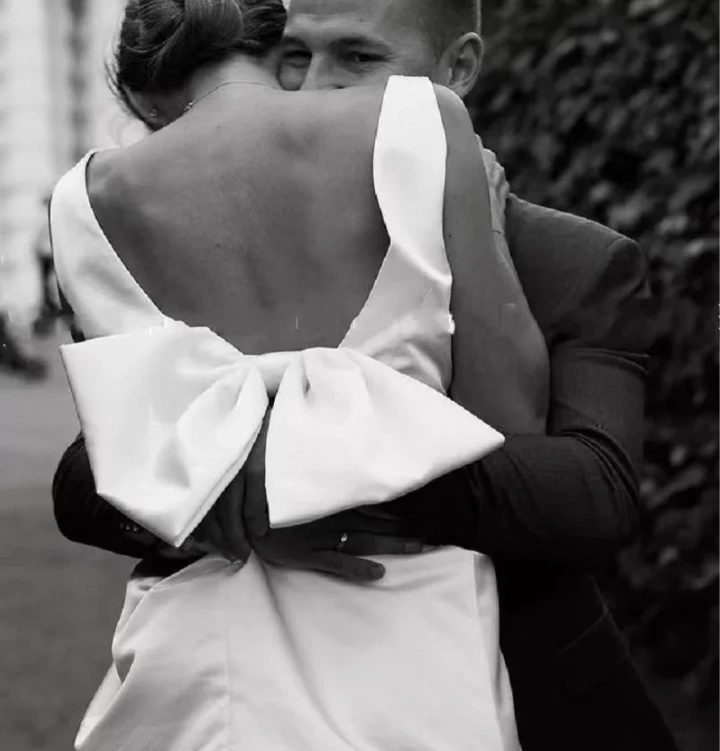 Short V neck satin Bridal Gown Wedding dress with big bow on back