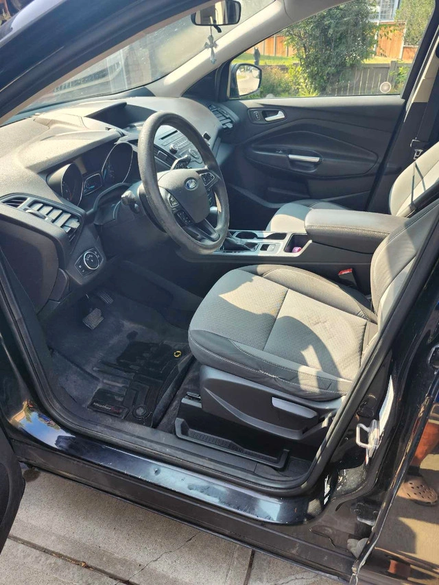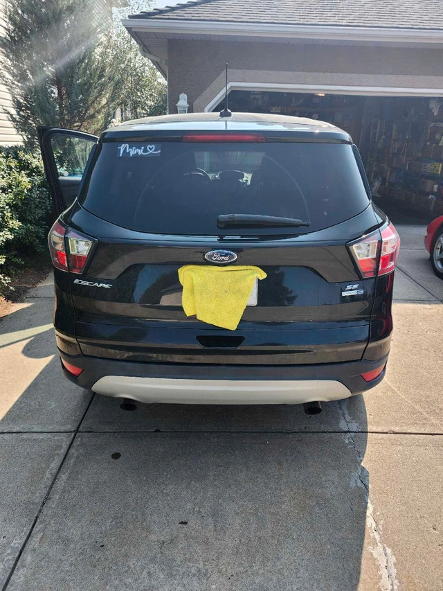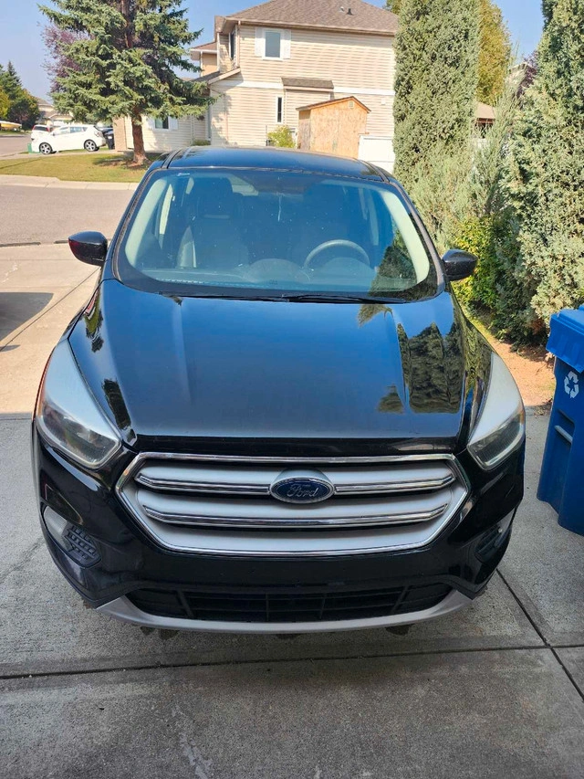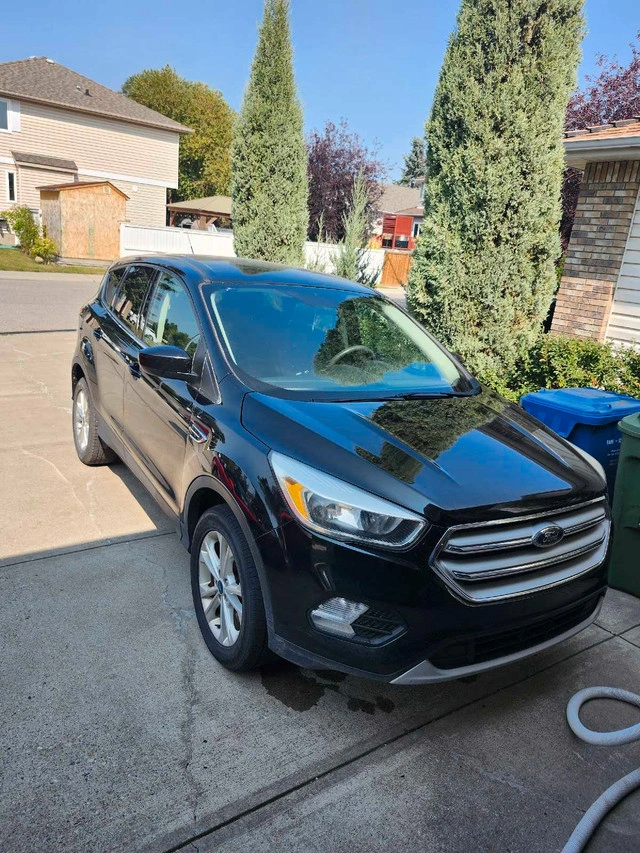 2017 Ford Escape, black with grey interior. 166000kms. Features include Bluetooth, back up camera, 2 fobs, remote starter, keyless keypad entry. Back tires are 8/32, and front tires are 6/32. New front brakes last year. Code p1450 shows up, and scratched back window (see in pictures). Located in Riverbend SE. Or call @ 4036891692