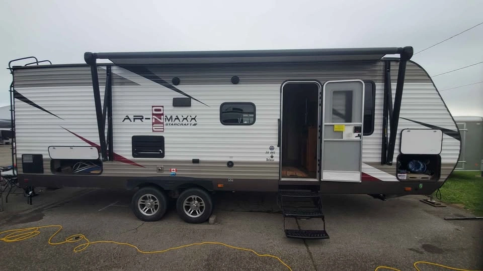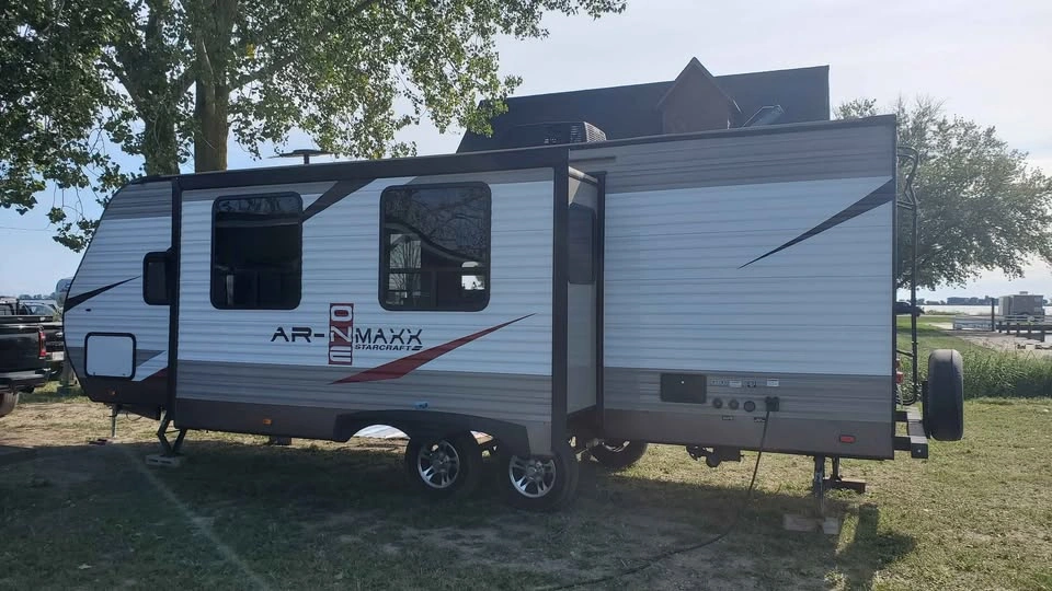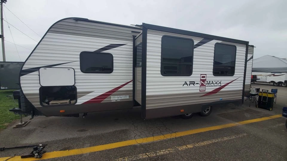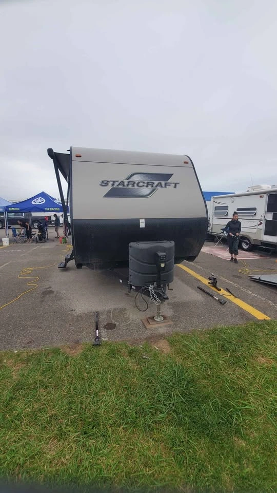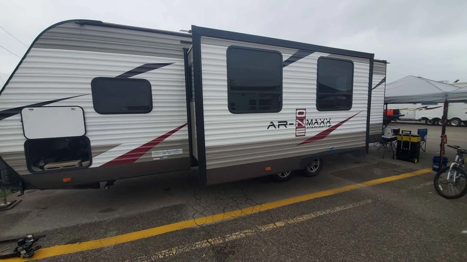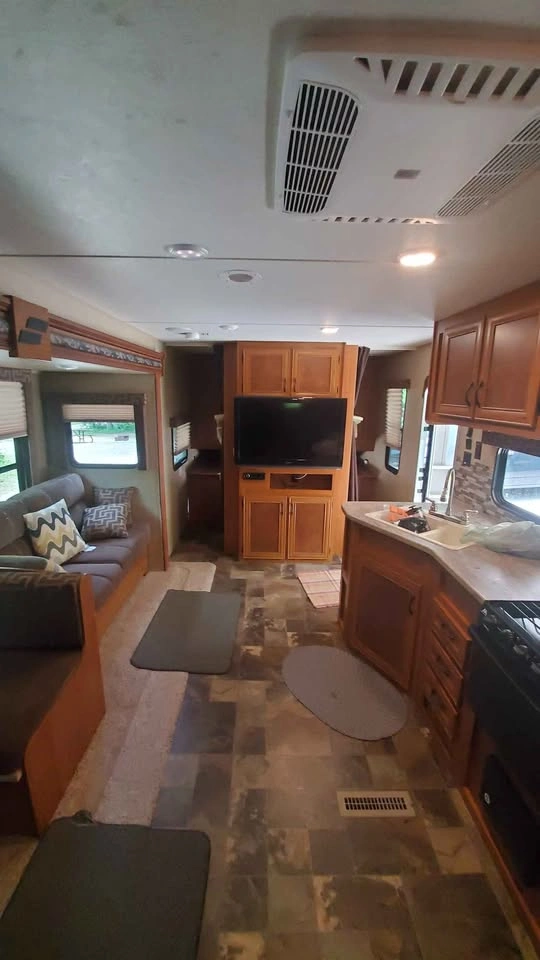 26ft travel trailer with tip out everything in perfect working condition. Two double bunks one queen indoor outdoor shower fridge stove a/c lots of storage.