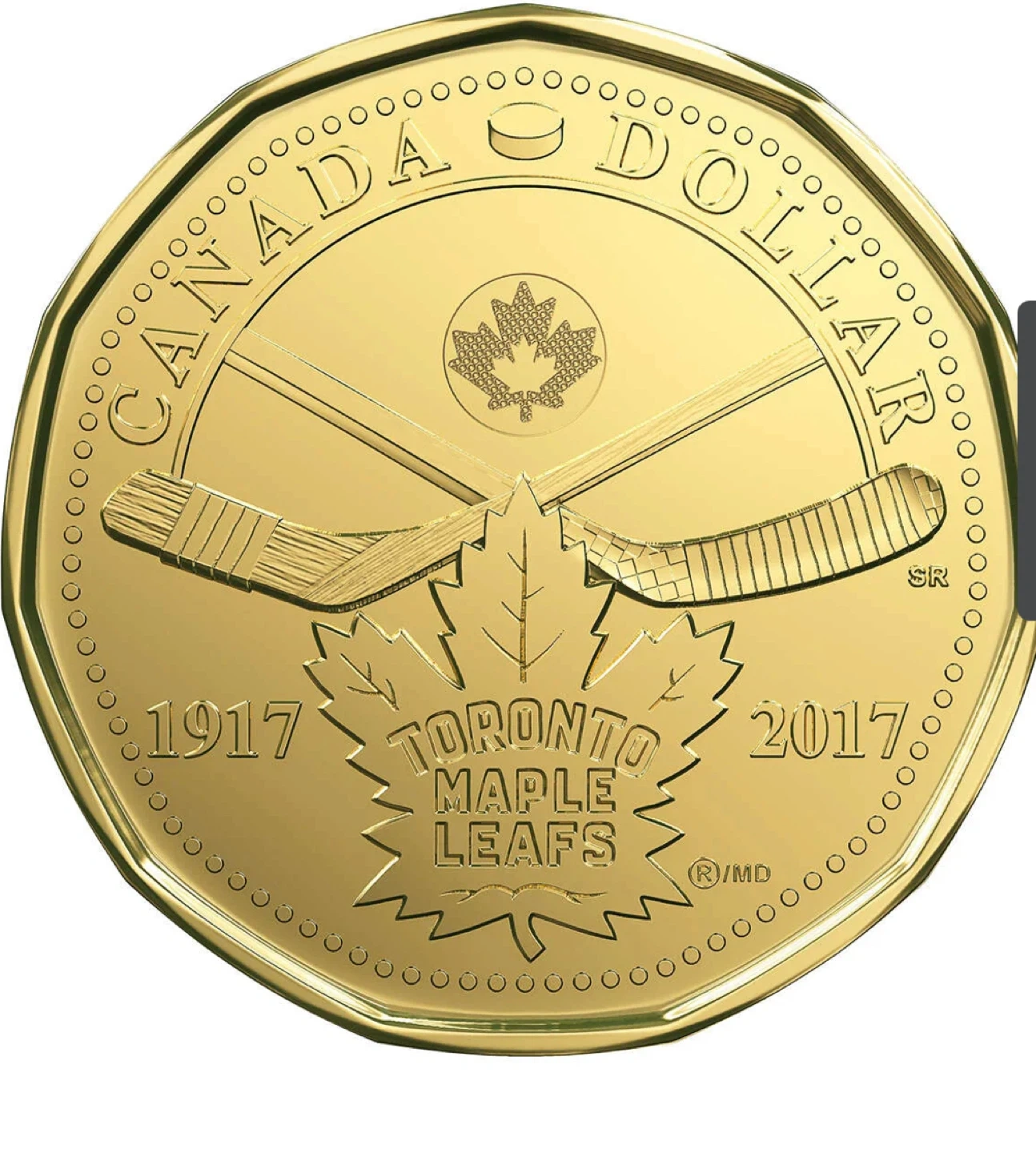 100Selling a 2017 Canada dollar coin featuring the Toronto Maple Leafs. It's a unique collectible item!