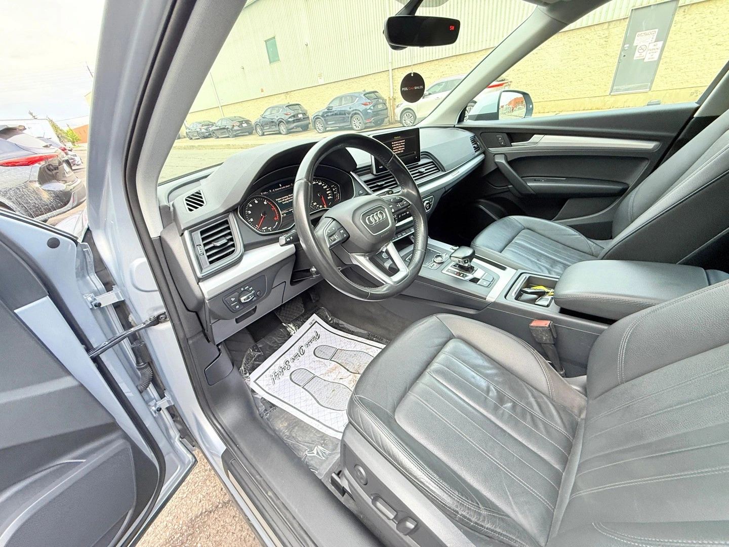 102018 Audi Q5 2.0T Progressiv | Panoramic Sunroof | AWD | Heated Seats Driven 110,638 km Automatic transmission Exterior color: Silver · Interior color: Black Fuel type: Gasoline One Year Extended Warranty from Audi Canada Until September 24, 2026 or 131,000 KM DM for CARFAX | LIEN FREE | TRADES ARE WELCOME