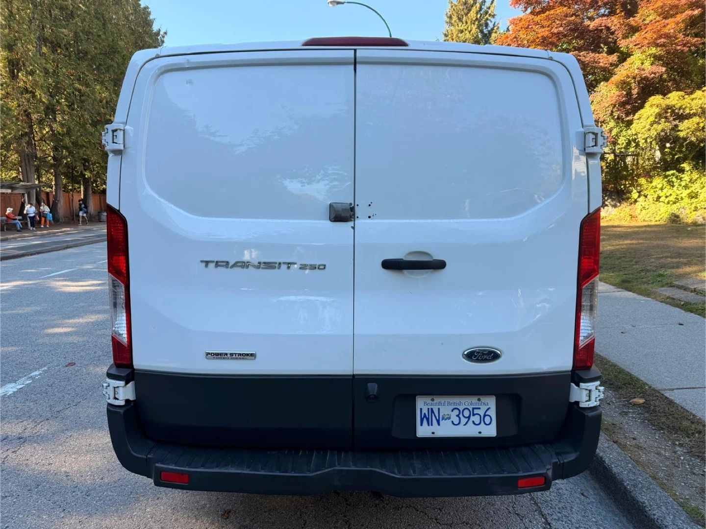 2018 Ford transit 250 Cargo Van 3.2 litre Diesal engine RWD automatic transmission power steering power brakes air conditioning tilt steering cruise control keyless entry rear barn doors, recent Cat Delete new oil change well maintained 210,000kms local all original condition ready for new business $22,500. 604-401-1606