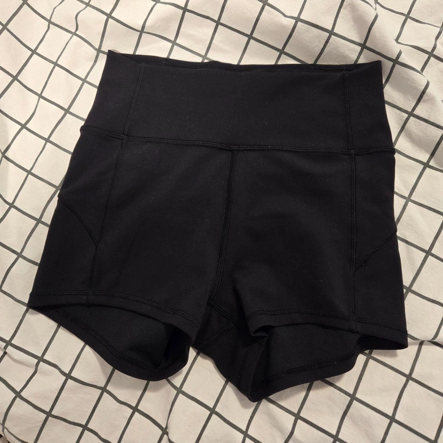 selling this pair of lululemon biker shorts in black. it is in perfect condition and has barely been worn. it is a size 4 and fits like an extra small to small