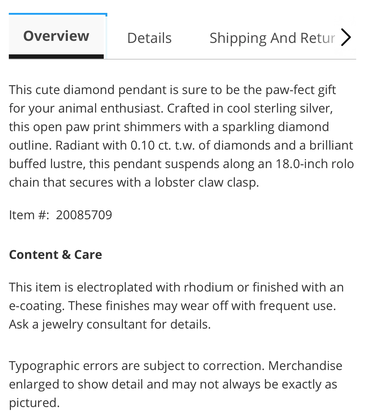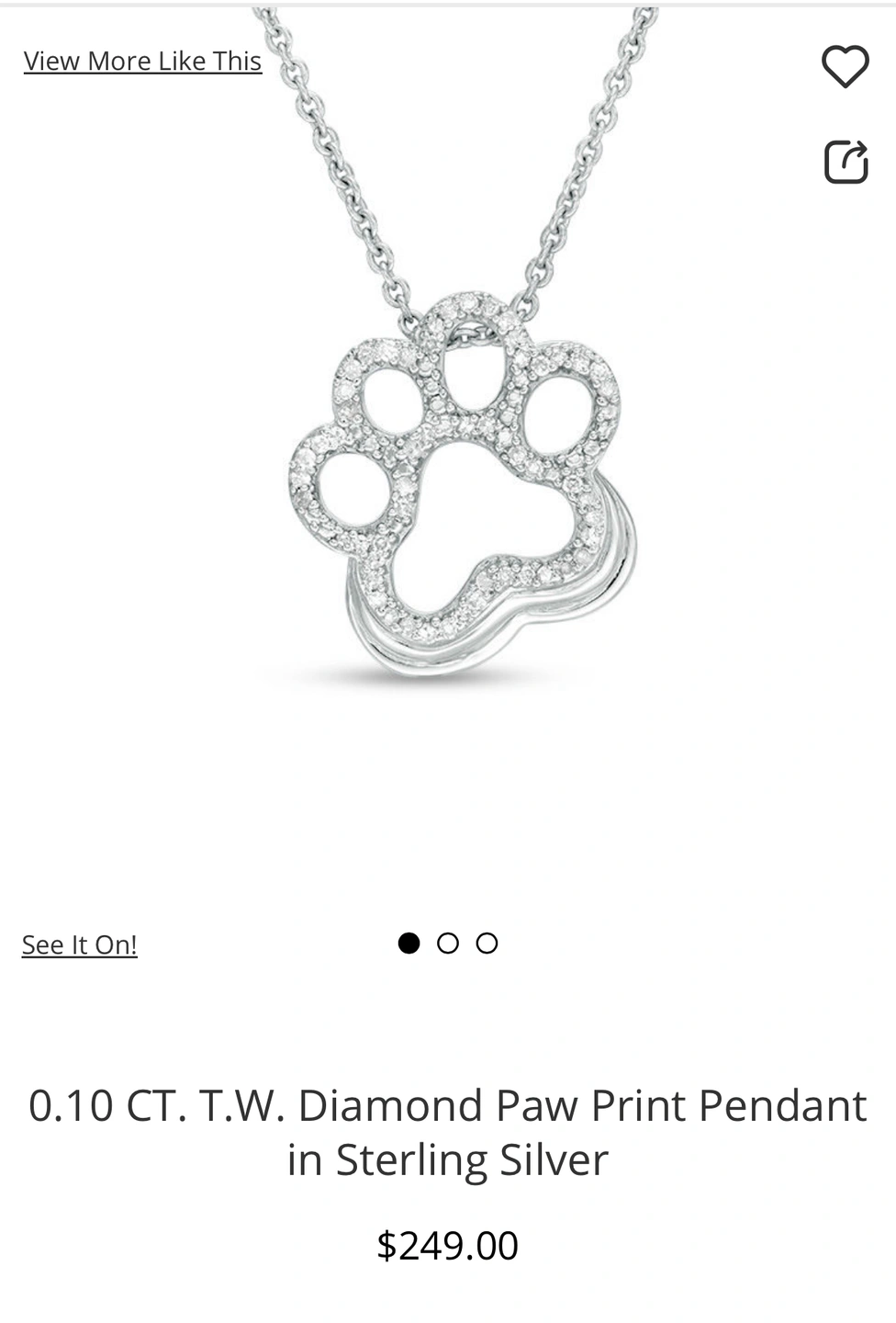 Can also search in Peoples site 0.10 CT. T.W. Diamond Paw Print Pendant in Sterling Silver.