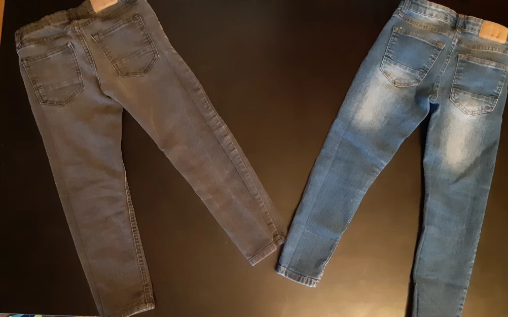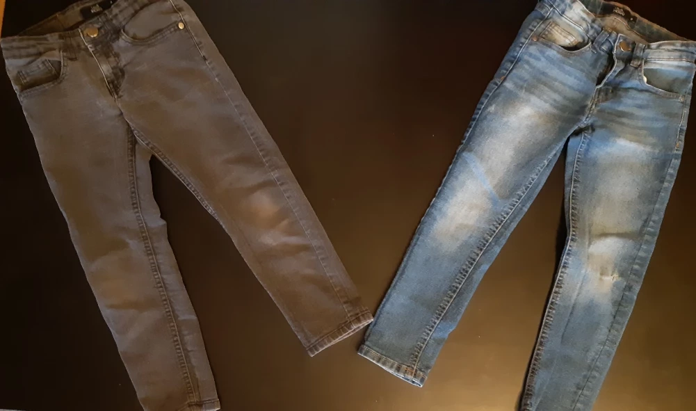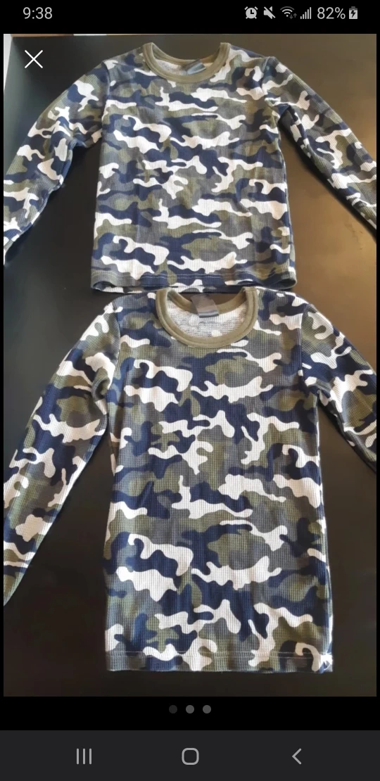 Two thermal camouflage long sleeve shirts and two skinny jeans; black pair and blue pair of jeans.