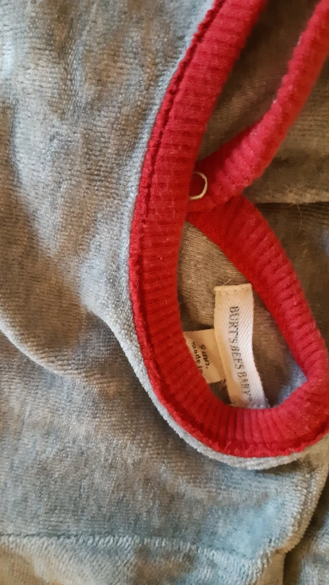 Burt bee's grey velvet onesie with red trim; 1 year