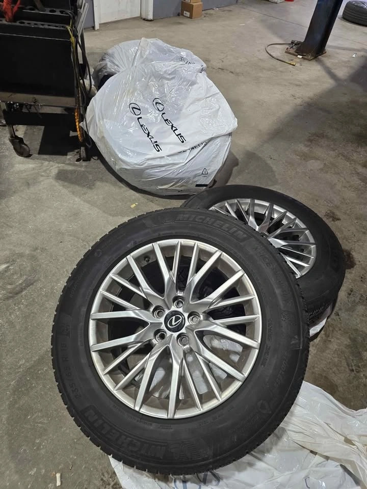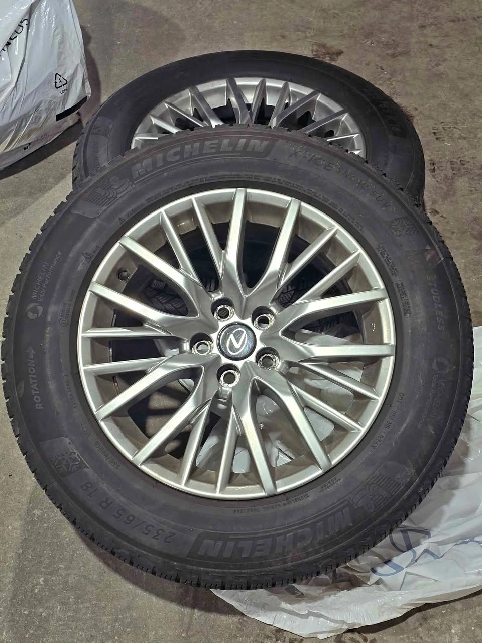 5For Sale: Michelin Winter Tires on OEM Lexus Rims * 235/65/R18 * Michelin X-Ice 2 * 2016 - 2022 Lexus RX350/RX450H * Used for only one season * 90% tread remaining * Selling due to car theft - unfortunately, my vehicle was stolen, and I no longer need these tires.