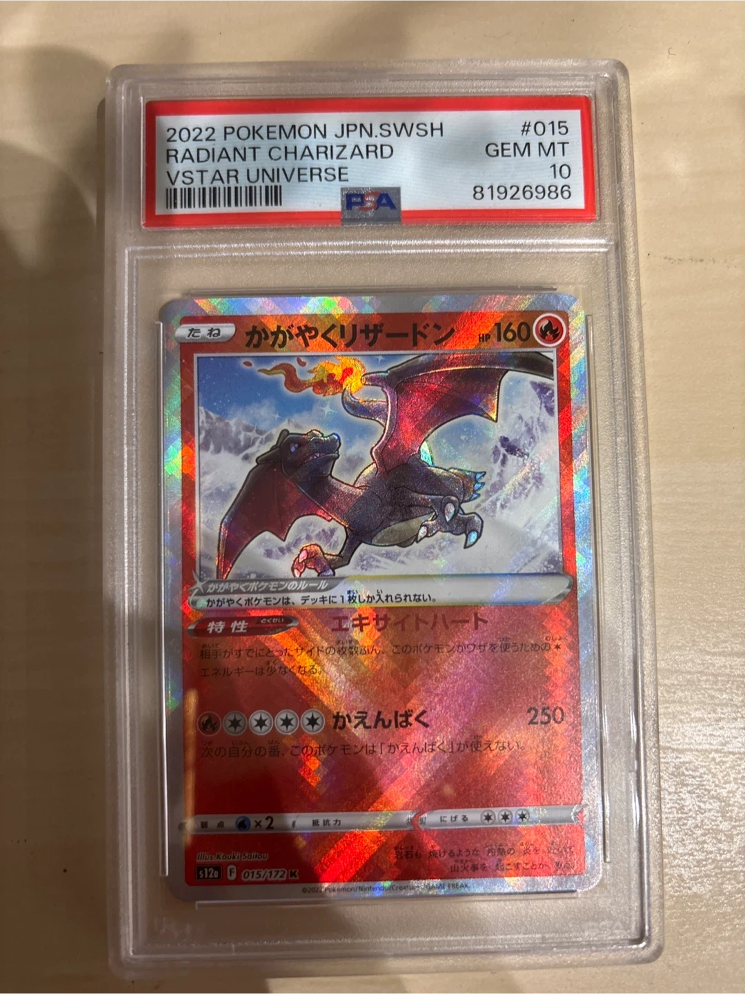 12Selling a 2022 Pokemon Japanese SWSH Radiant Charizard VSTAR Universe card! It's graded GEM MT 10.