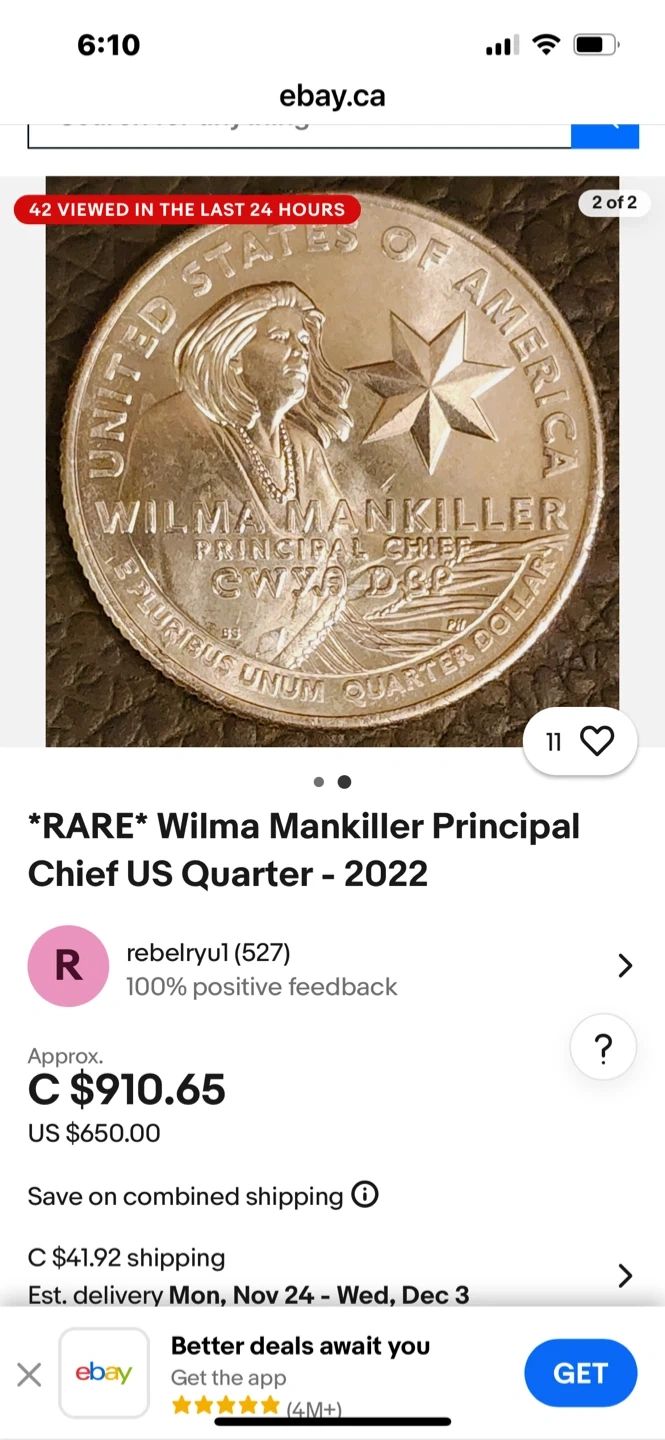 250Selling a 2022 Wilma Mankiller Principal Chief US Quarter. Feel free to message me if you're interested!