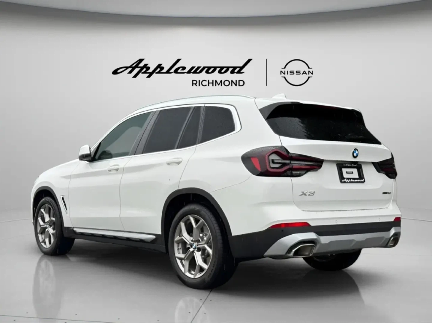 752023 BMW X3 xDrive30i 14,275 km. White exterior. Red interior. No accidents. • 2.0L TwinPower Turbo 4-cylinder engine / 8-speed automatic / xDrive all-wheel drive • 248 hp and 258 lb-ft of torque • LED headlights and taillights / power-folding mirrors • Panoramic moonroof • Leather sport seats / heated front seats / power driver’s seat with memory • Heated steering wheel / dual-zone automatic climate control • 10.25″ iDrive infotainment display with navigation / Apple CarPlay & Android Auto • Rearview camera / parking sensors / lane-departure warning / blind-spot detection • Power liftgate / keyless entry / push-button start • 19″ alloy wheels