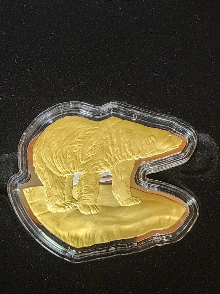 5Selling a beautiful 100gr 2023 Canadian gold plated silver coin featuring a polar bear. It's in excellent condition and comes in its original box and paper. RCM Asking $1000 obo