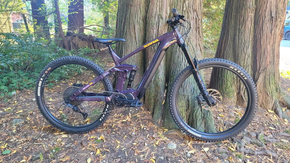 15The Kona Remote 160 is basically adding a motor to the legendary Process 153 bike! This bike is super capable and had tackled everything from Green to Black trails on the Northshore, Squamish, Whistler, and even bike parks! Bike has always been maintained and regularly serviced. Minor scuffs on the frame but no cracks or other damages. 1724km on original motor, new battery (June 2025). Battery range is good for 80km distance on ECO mode. I have regularly done 50km rides using mostly ECO mode on flats and descent, Trail Mode on cross country (up & down), and boost on the ocassional punchy climb. Many stock parts like new as they were removed and upgraded when the bike was new in 2023 and stored. These include wheels, tires, saddle, dropper post, stem, bars, and grips. MSRP $7,999 from Lynn Valley Bikes Frame Aluminum, 53lbs sized Large Fork RockShox Lyrik Select 170mm Shock RockShox Deluxe Select+ Wheels 29″ WTB i30 Tires Maxxis Agresssor 29x2.6 & DHR2 29x2.4 Drivetrain 1x10 microSHIFT Advent X Motor Shimano 250W 60Nm mid-drive Battery Shimano 504Wh Brakes SRAM DB8 4-piston Hydraulic SRAM Centerline 200mm/180mm Rotors Seatpost Tranz-x 170mm Dropper