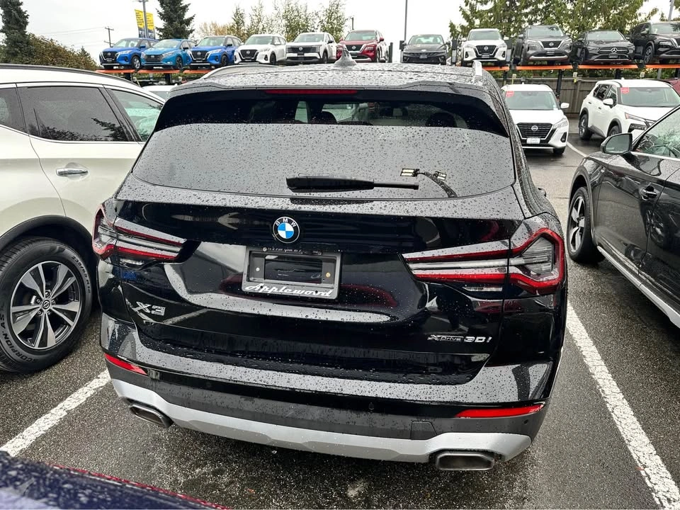 752024 BMW X3 xDrive30i 43,340 km. Black exterior. Black interior. VIN 5UX53DP02R9U28833. • 2.0L TwinPower Turbo inline 4-cylinder / 8-speed automatic / xDrive AWD • LED headlights and taillights • Panoramic moonroof • Power front seats with driver memory • Heated front seats / heated steering wheel / tri-zone climate control • 10.25″ iDrive display with navigation and voice control • Apple CarPlay & Android Auto compatibility • Parking Distance Control (front and rear) / rearview camera • Power liftgate / keyless entry / push-button start Call/Text Kaveh at 604*353*5857 to schedule a viewing.