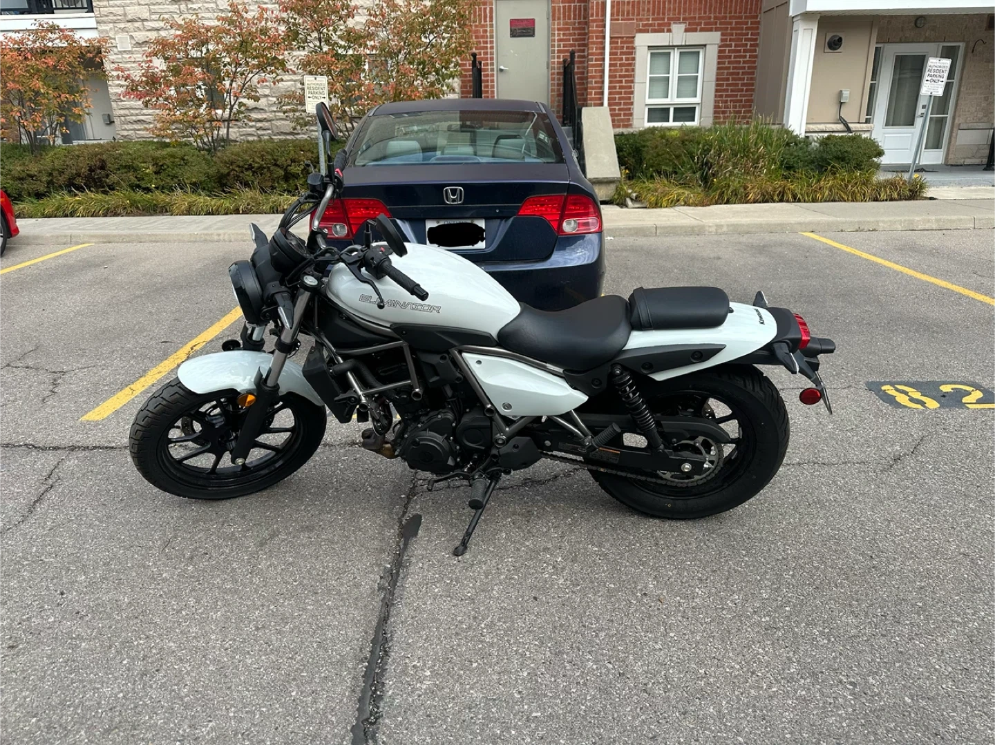10Selling a Kawasaki Eliminator 500 motorcycle. It's in great condition and ready for a new owner! This bike is perfect for cruising around town or enjoying a weekend ride. Only 1300km and 1 yr old. Comes with a GPS tracker. Selling because I am moving out of the country.