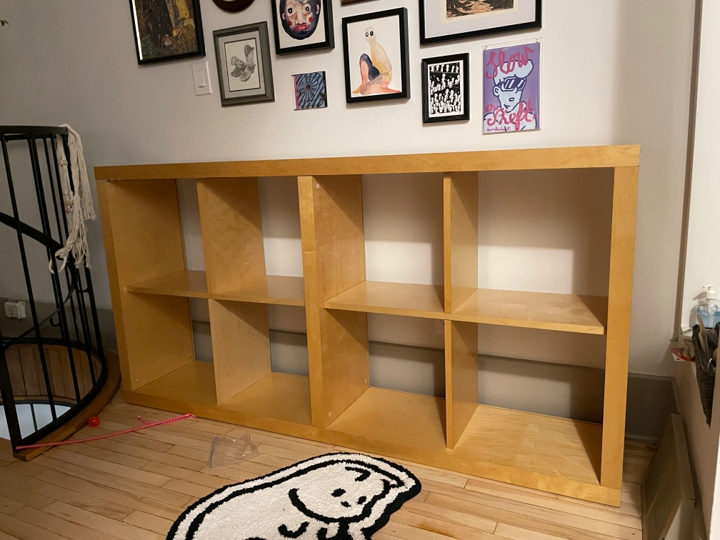 from the 90s/early 2000s Expedit 2x4 cube unit Similar to Kallax but way more solid Beech color