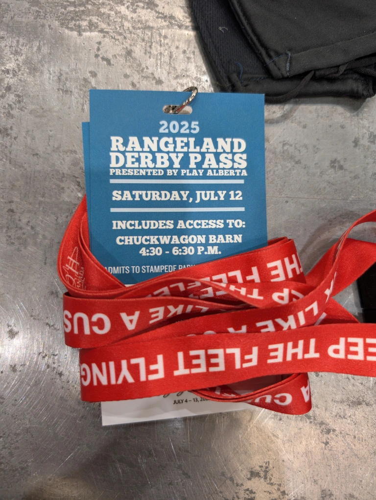 73Selling a 2025 Rangeland Derby Pass presented by Play Alberta! It includes access to the Chuckwagon Barn from 4:30 - 6:30 PM on Saturday, July 12. The pass admits to Stampede Park and is valid from July 4-13, 2025. 2 passes. 600 for both obo