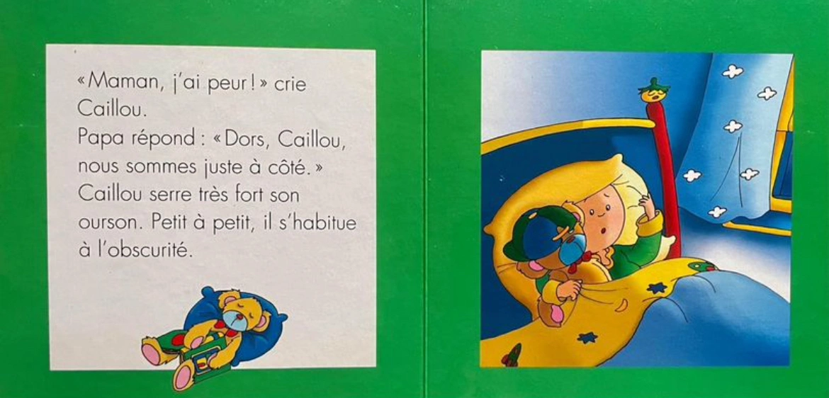 Four Caillou French Language books by author and publisher Christine L'Heureux and illustrator Hélène Desputeaux for French immersion students
