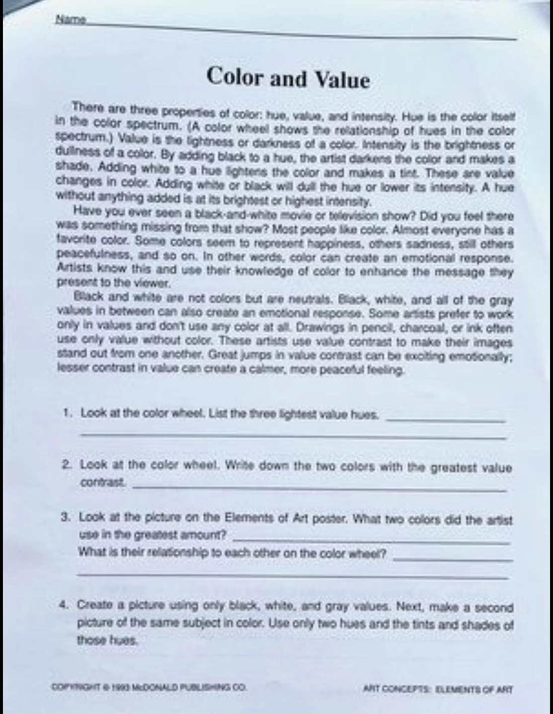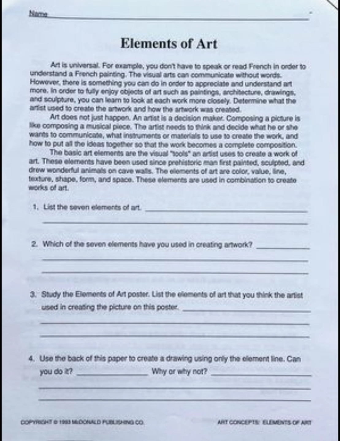 THE ELEMENTS OF ART (Bulletin Board posters)