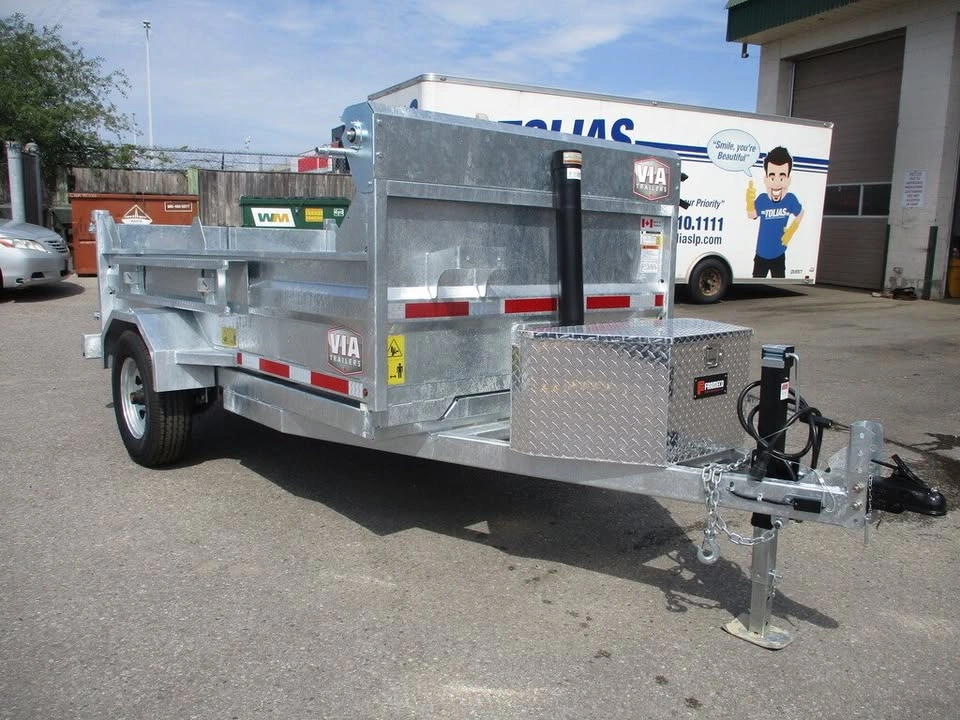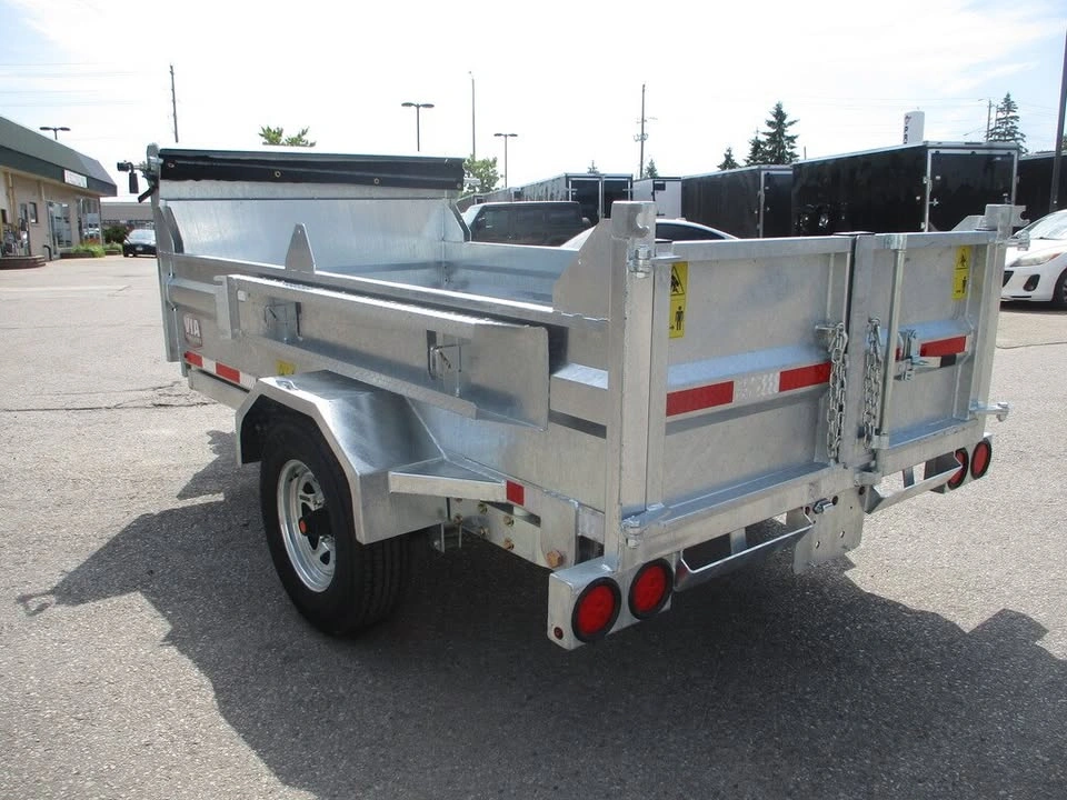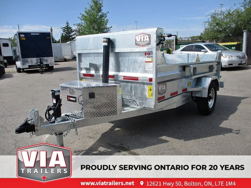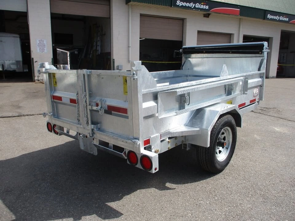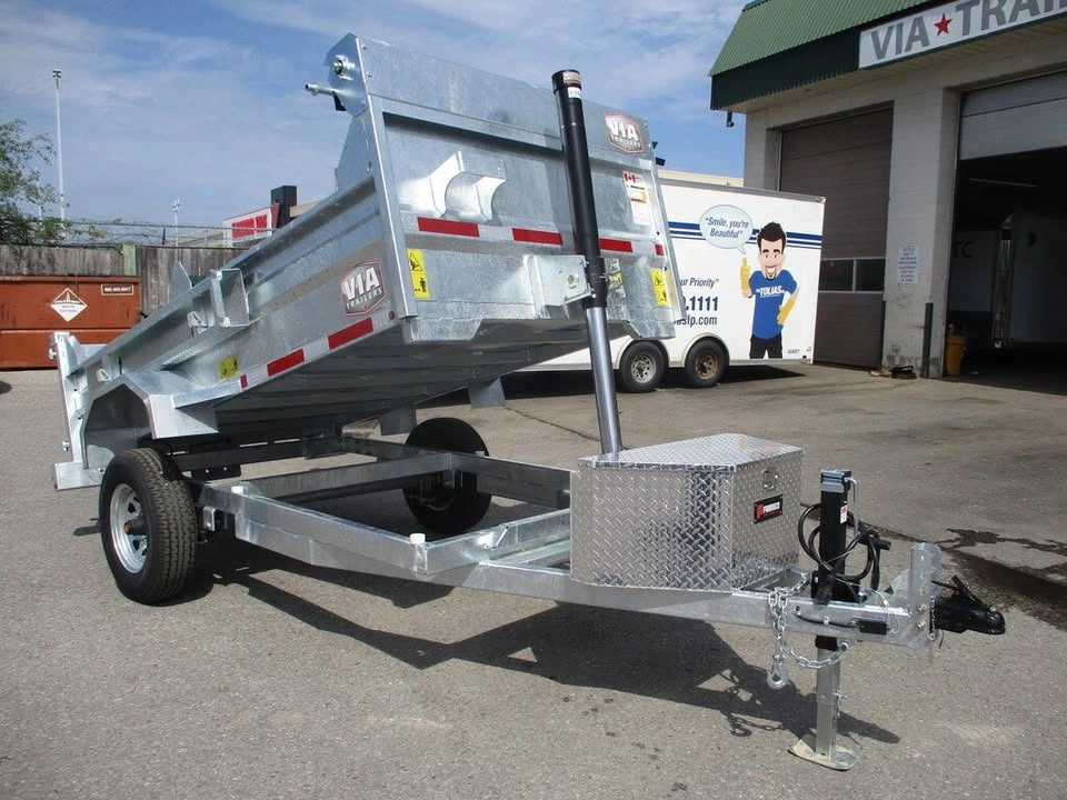 5Northern Star Dump Trailers are new for us a Via Trailers but we love the build quality, price point and standard features. They are built in Ontario and seem to be built with common sense use in mind. The single axle 5x10 Dump Trailer boast the following features 5200 lbs axle w/electric Break LED Lights Ramps Barn Door Galvanized Frame Adjustable Coupler Tarp and Roller 5x10 dump box GVWR - 5200 lbs Trailer Weight - 2156 lbs Cargo Cap. 3044LBS