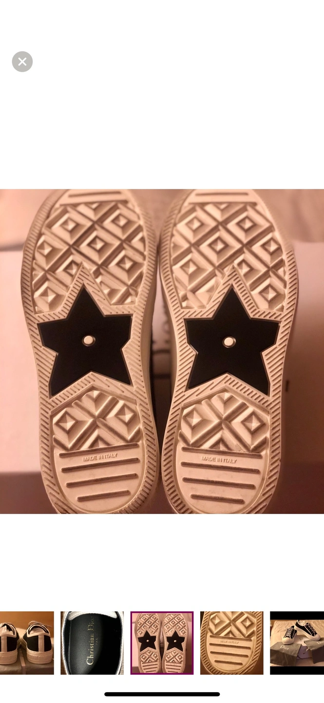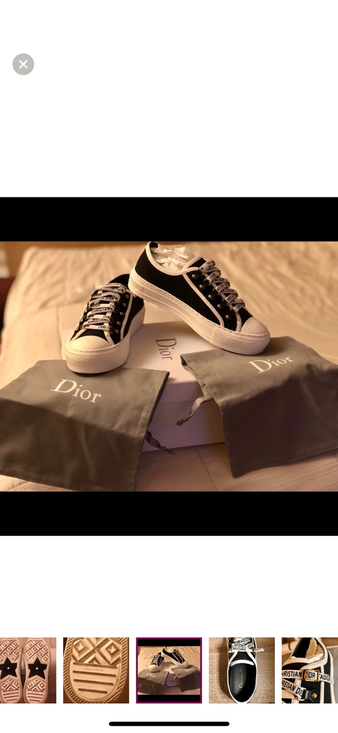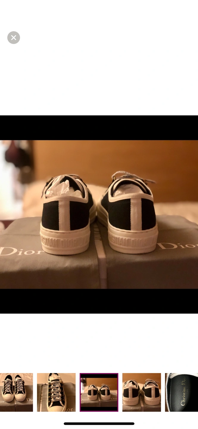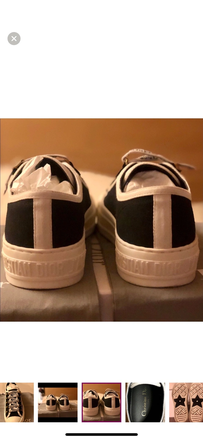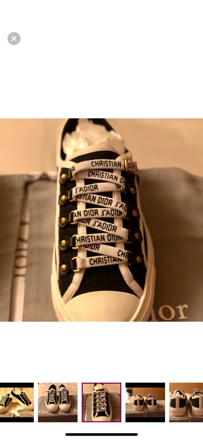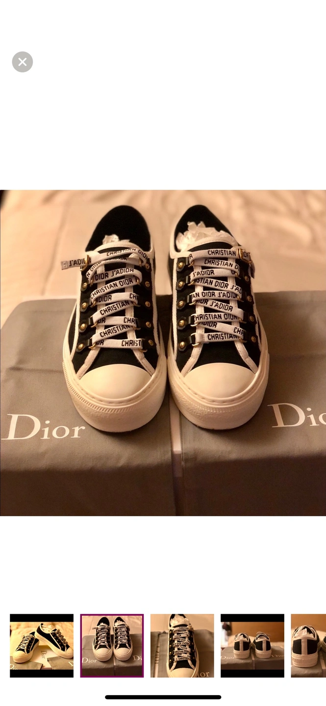 Black canvas enhanced by tonal calfskin inserts and antique gold-finish metal details. It's relaxed design features ’Christian Dior ’J’Adior’ signatures on the rubber sole and laces for a timeless look. Rubber sole with a star. Made in Italy. Non-removable laces. Excellent condition with original box and cloth bag included.