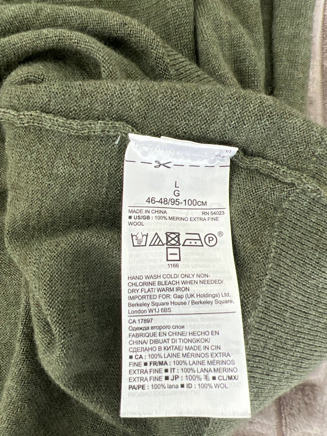 Excellent condition. 💯 Merino Wool, very soft, not itchy at all. Very light sweater. Perfect for all seasons.