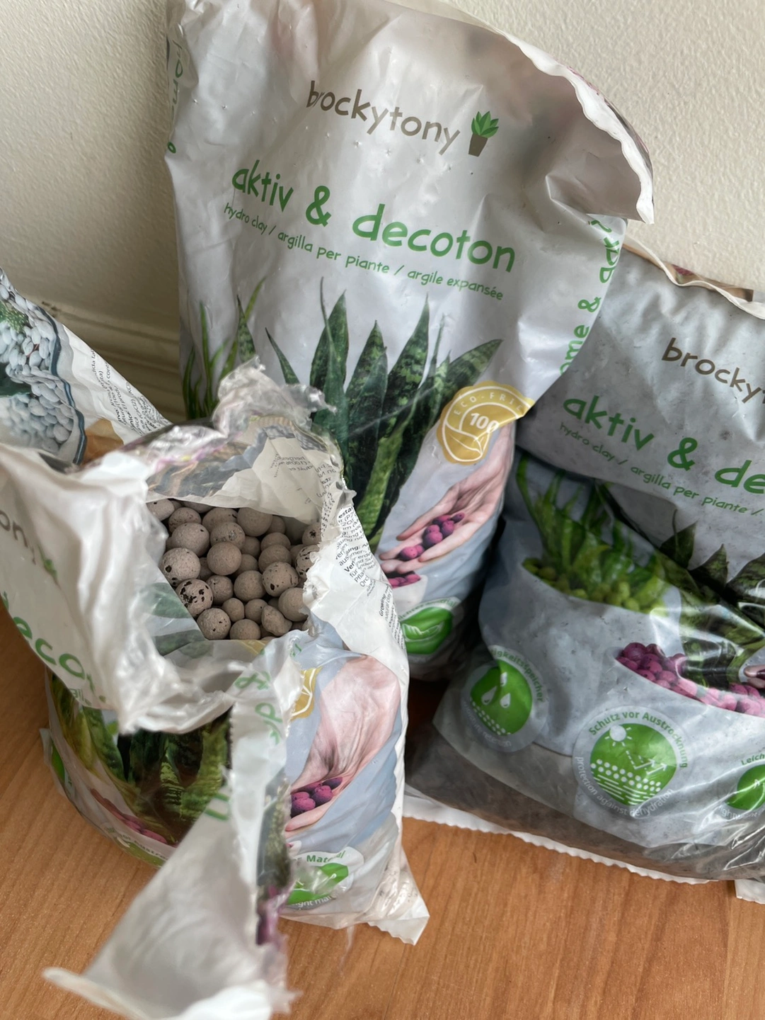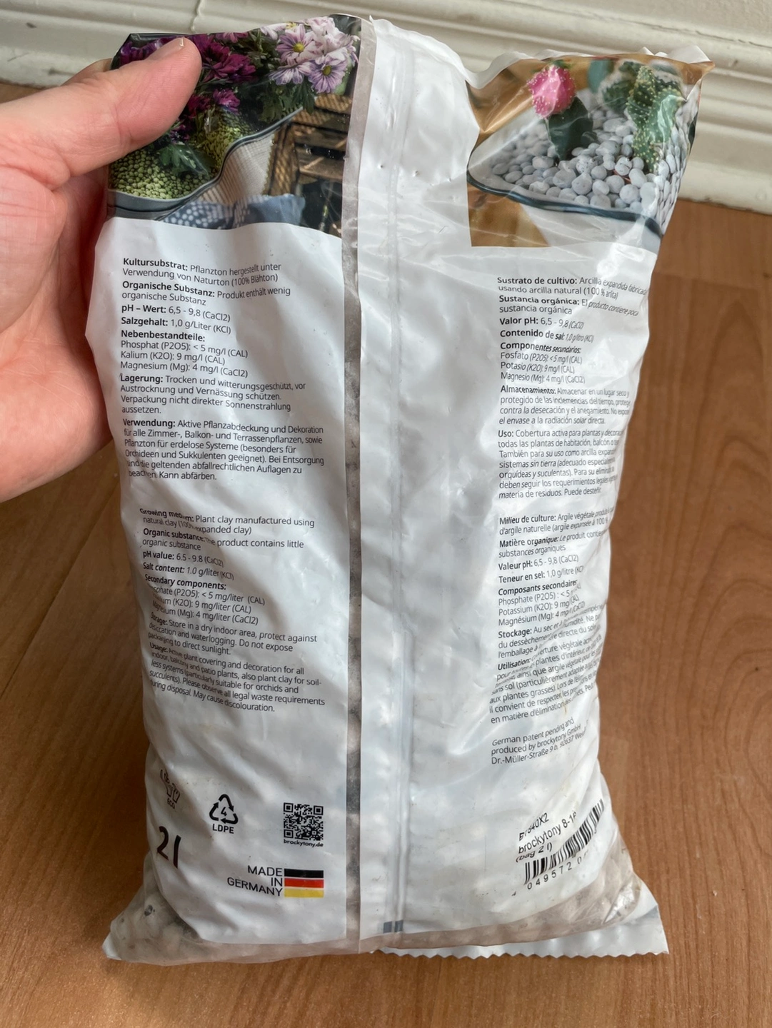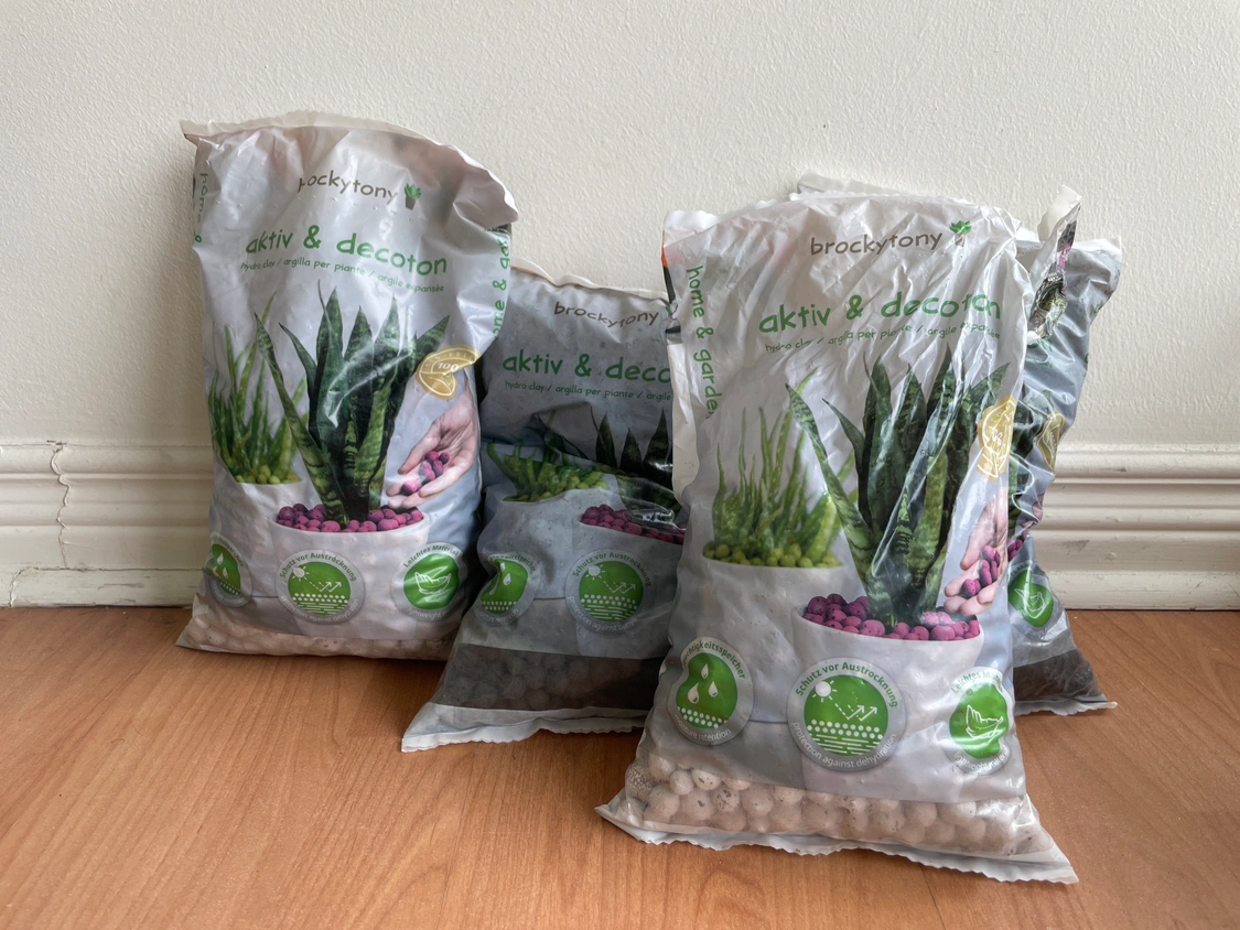 clay pebbles white - two bags, one sealed, one open with at least half left, really just a handful or so has been taken used.