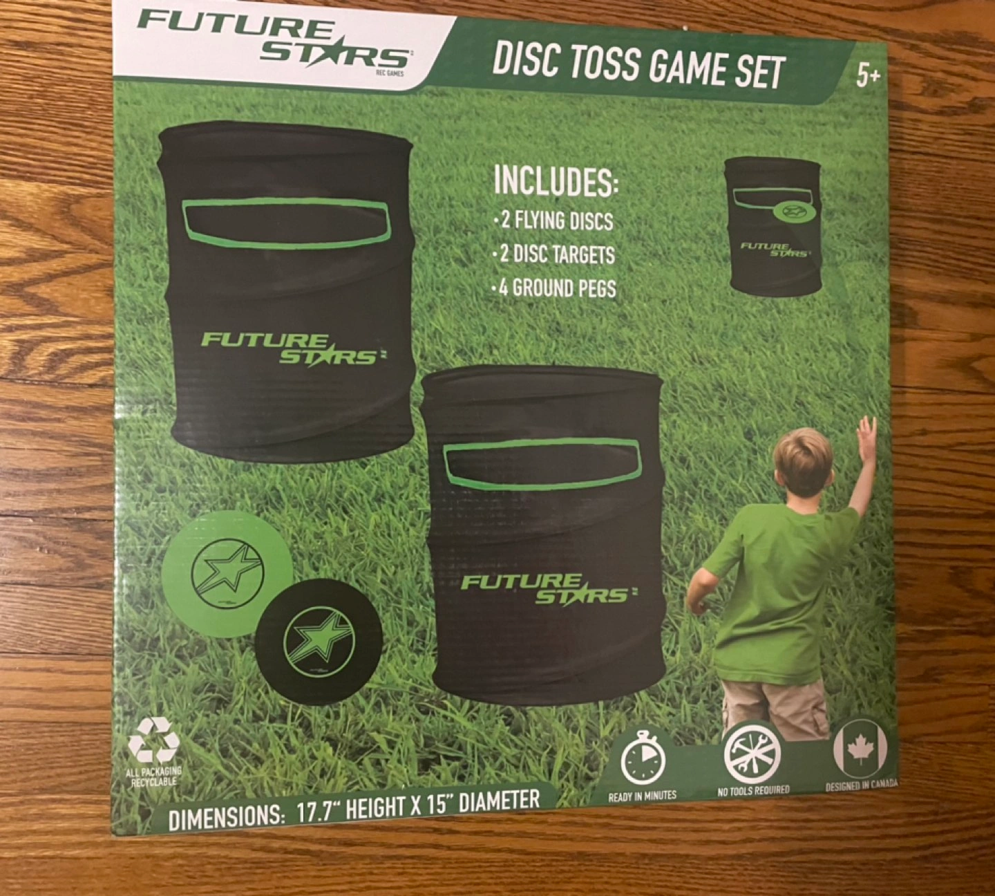 -includes: 2 flying discs, 2 disc targets, 4 ground pegs
