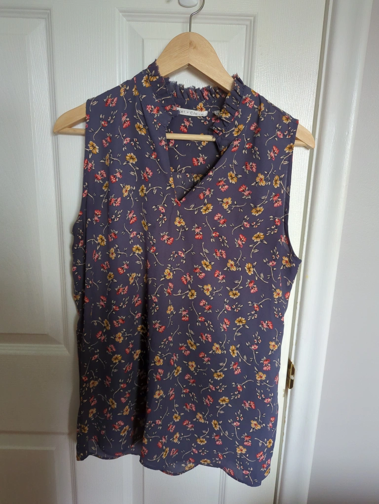 Floral sleeveless top. cute outfit when parked with jean shorts and white sneakers.