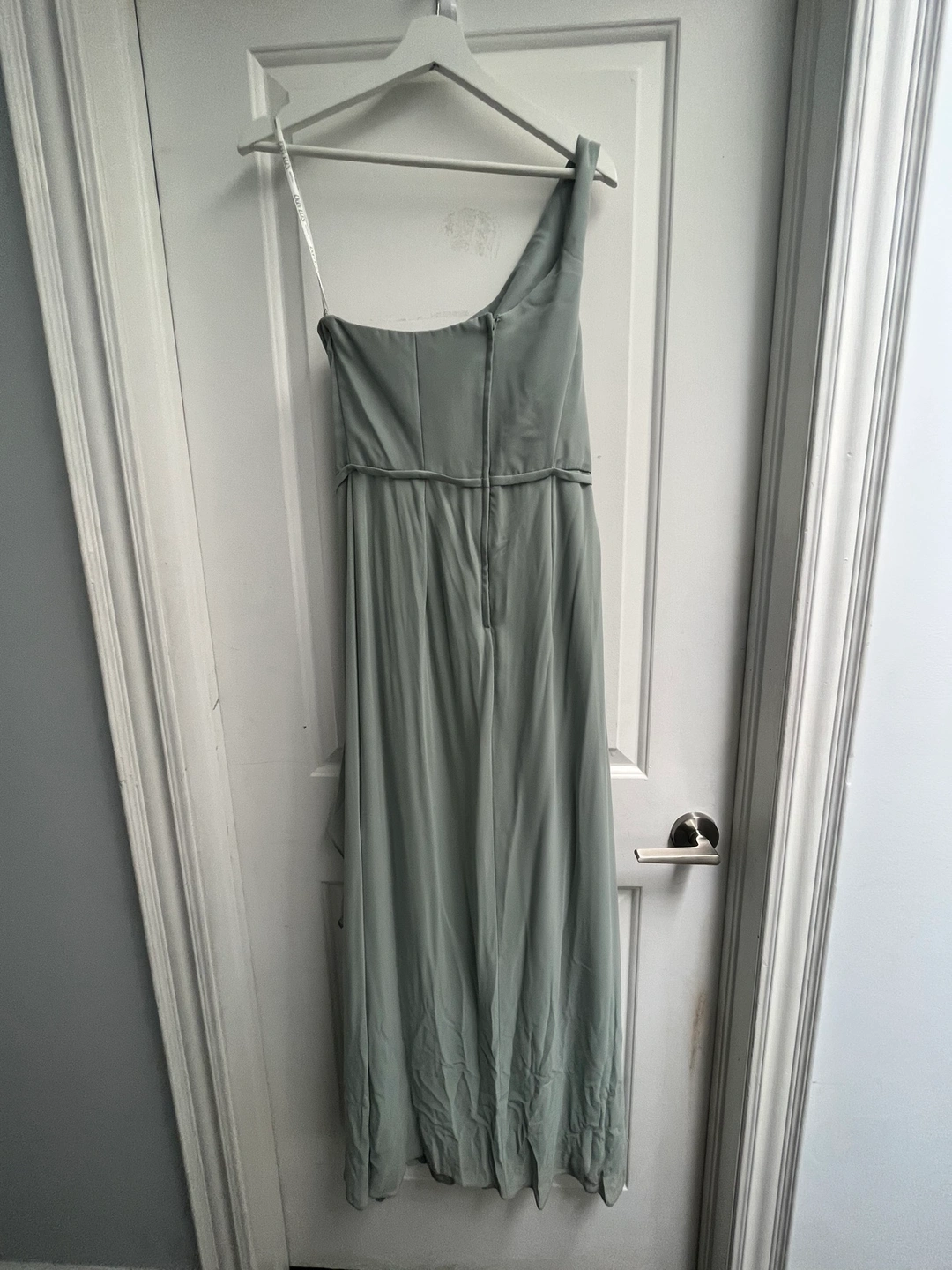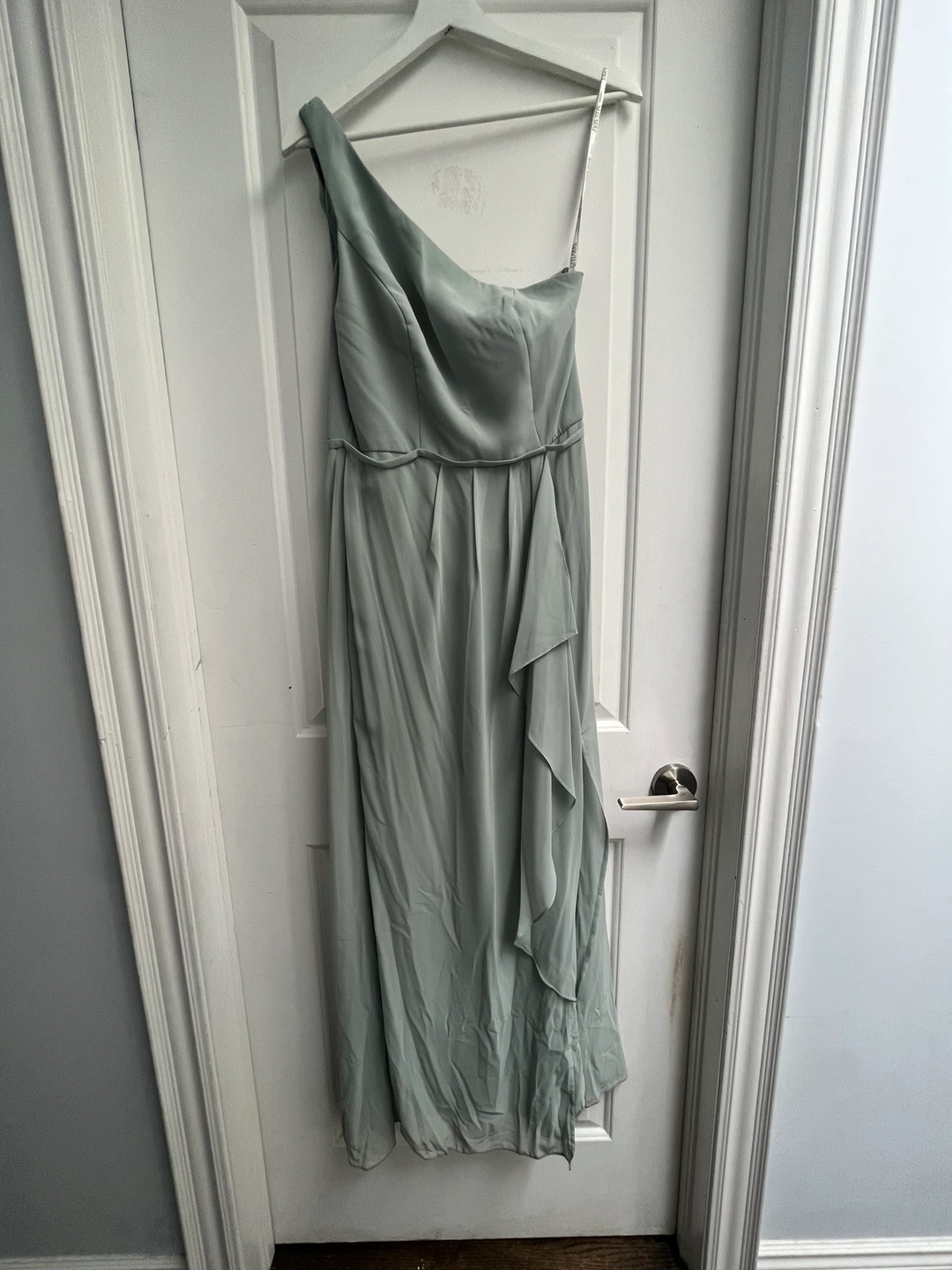 Sage, green, one shoulder, long dress with slit
