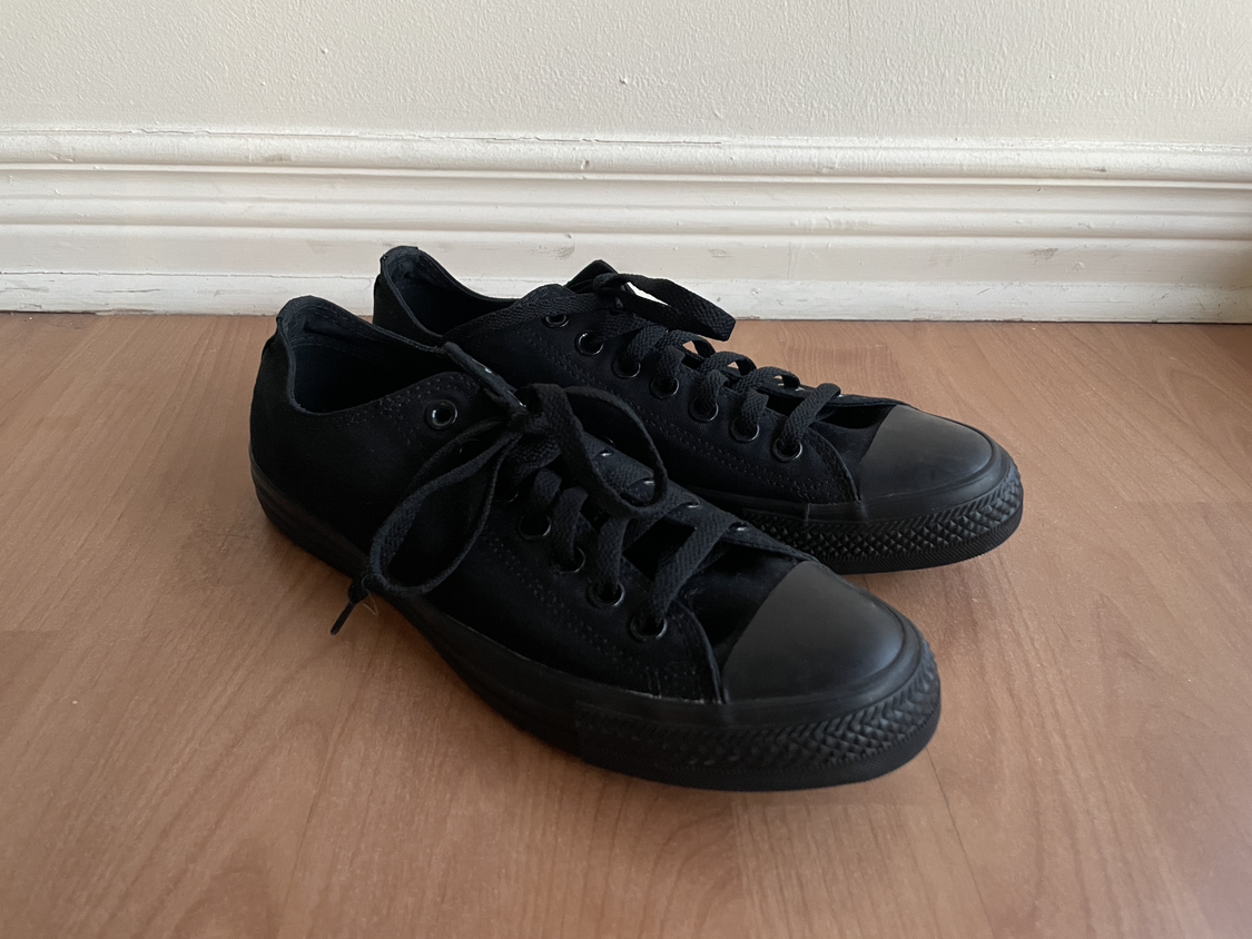 black monochrome chuck taylor converse 8.5 mens /10.5 womens brand new in box bought for work and never wore them, just been sitting here, trying to declutter. Located near College Park. See my other listings, open to deals for multiple items.