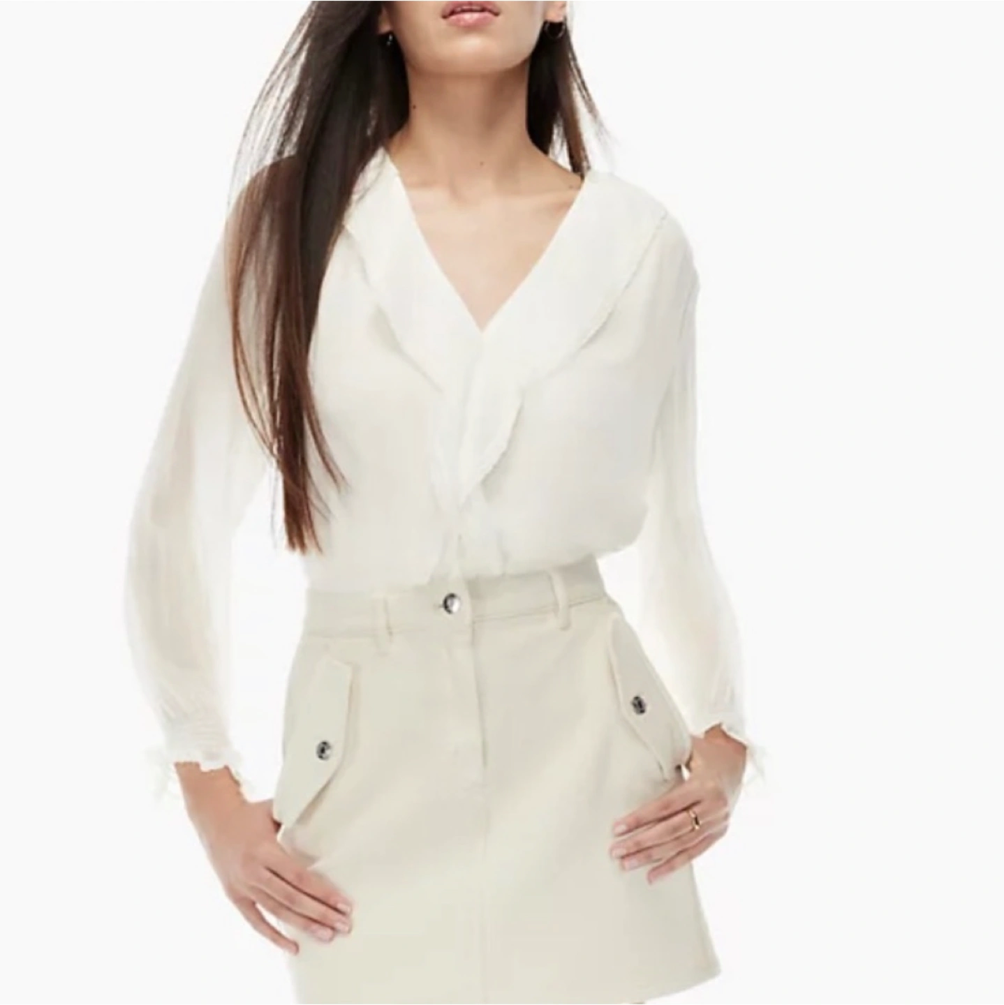 - ruffled V neck