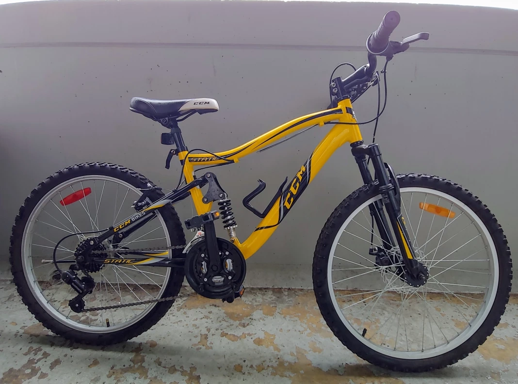 Static, 21 speeds Gripshift changers, aluminum wheels size 24”, aluminum frame size 15” fit 5'2" to 5’5" height, quick adjust seat. Break cables just need to be tightened.
