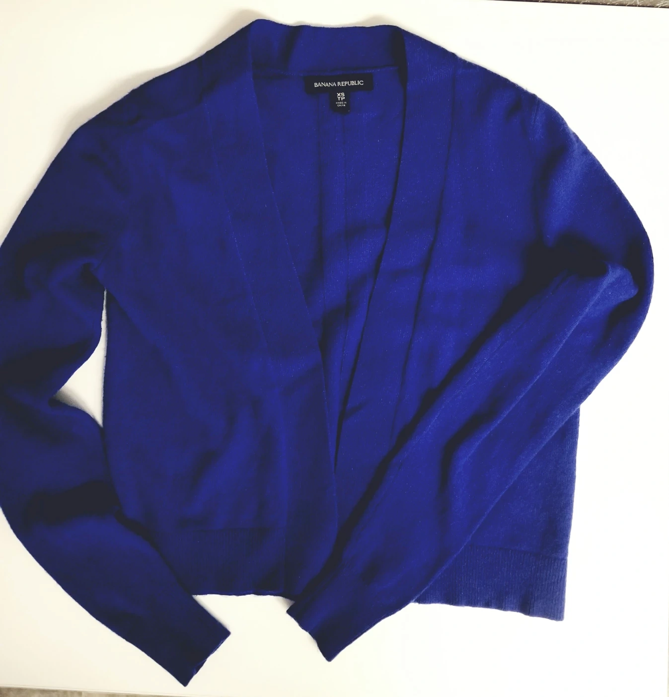 Outfit incomplete? add this cute little cobalt blue cardigan from Banana Republic to polish off your ensemble. Plus this sweater will keep you warm in the fall and winter. A cashmere piece for your wardrobe collection.
