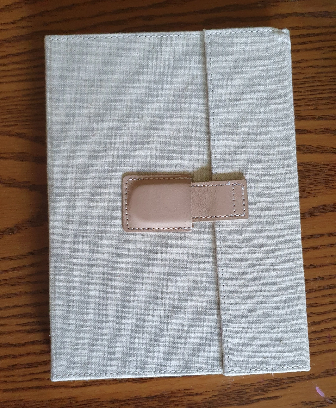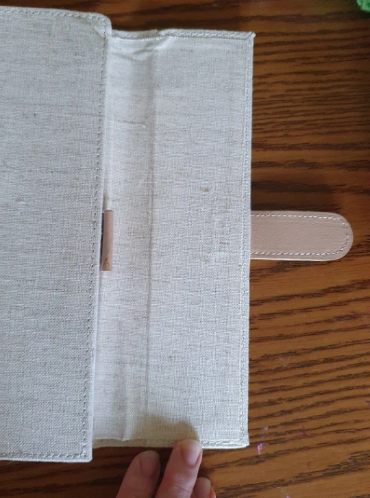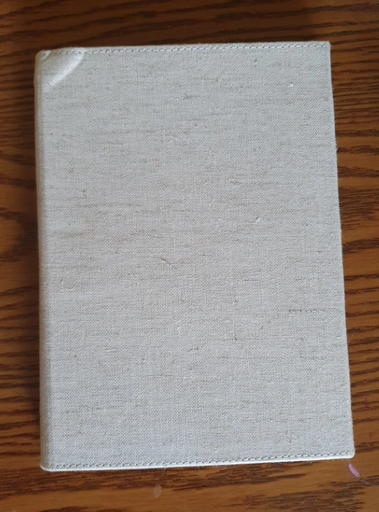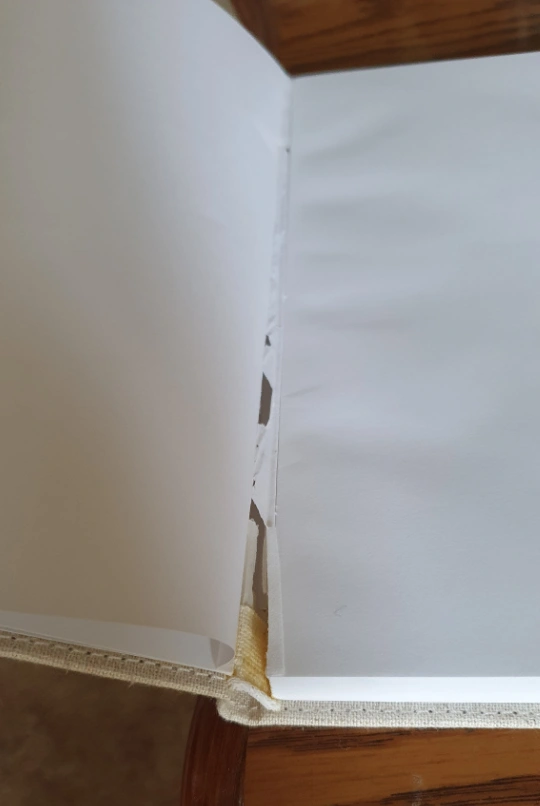 This sketchbook is unused but damaged π The crinkle of the pages on top right corner is throughout the whole sketchbook, pages also detached from spine at bottom half, unfortunately. (It fell from the top shelf and landed on a bad angle). It can hold a pencil or pen in a designated loop (shown in the 3rd photo). I hope this sketchbook finds someone who won't mind the damages and make great use out of it π