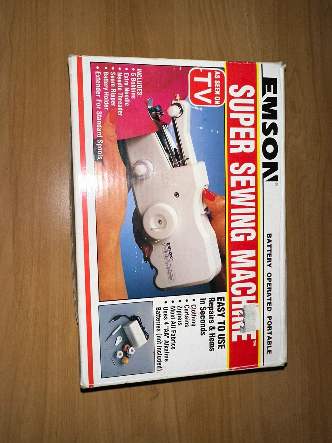 Brand new in box, hand held sewing machine. Can be used for quick repairs or simple sewing or mending.
